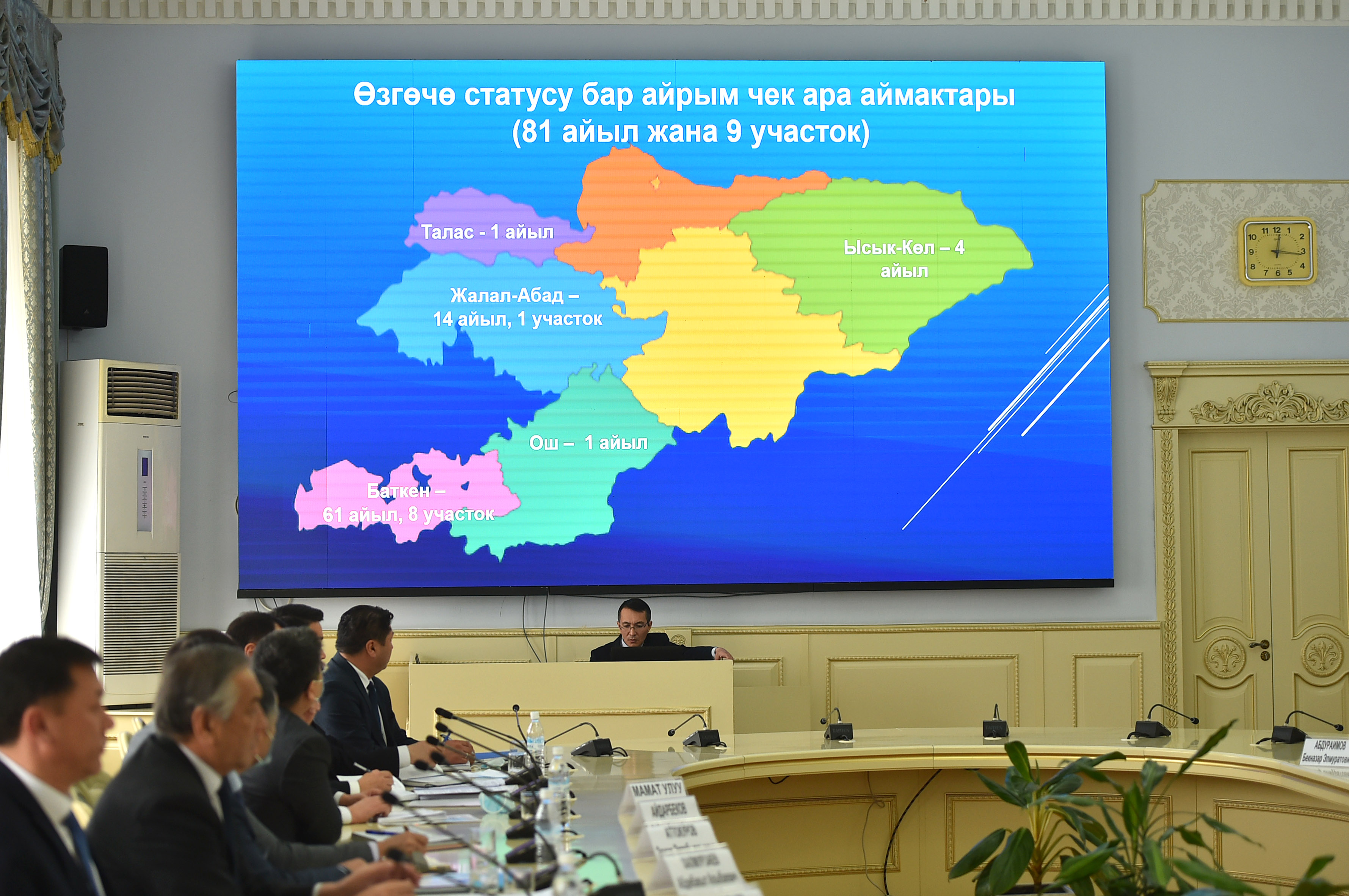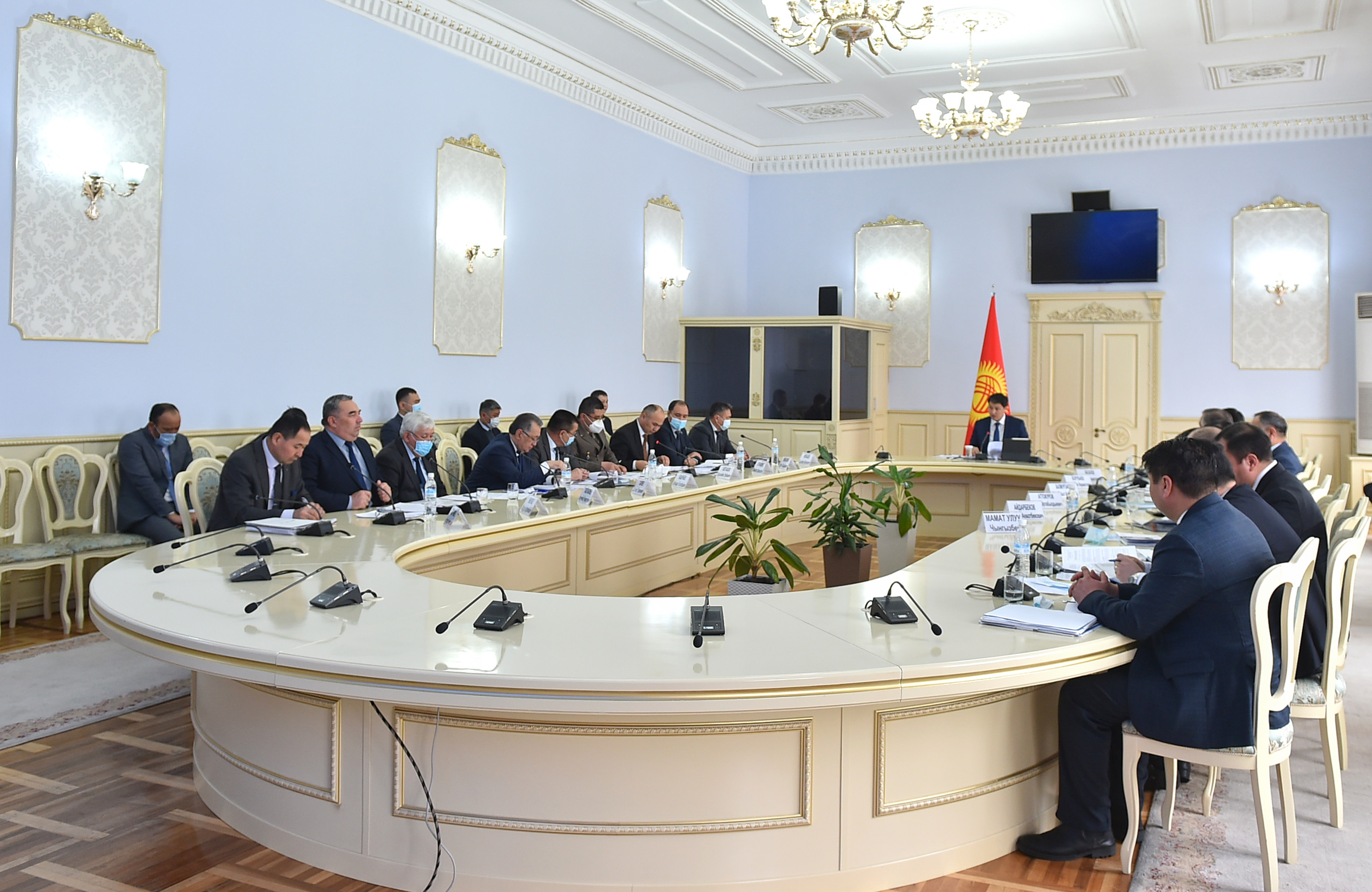 Кыргыз Республикасынын Премьер-министри Улукбек Марипов 2021-2025-жылдары өзгөчө статуска ээ болгон Кыргыз Республикасынын айрым чек ара аймактарынын коопсуздугун камсыздоо жана социалдык-экономикалык өнүктүрүү боюнча мамлекеттик программаны ишке ашыруунун иш-чаралар планын талкуулоо боюнча ведомстволор аралык комиссиянын отурумун өткөрдү.