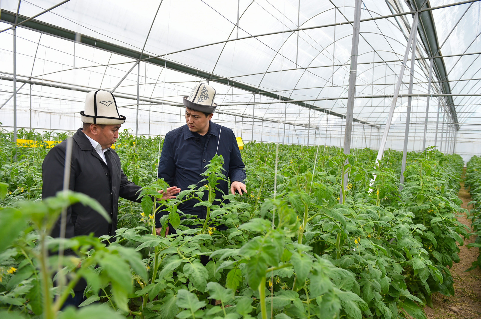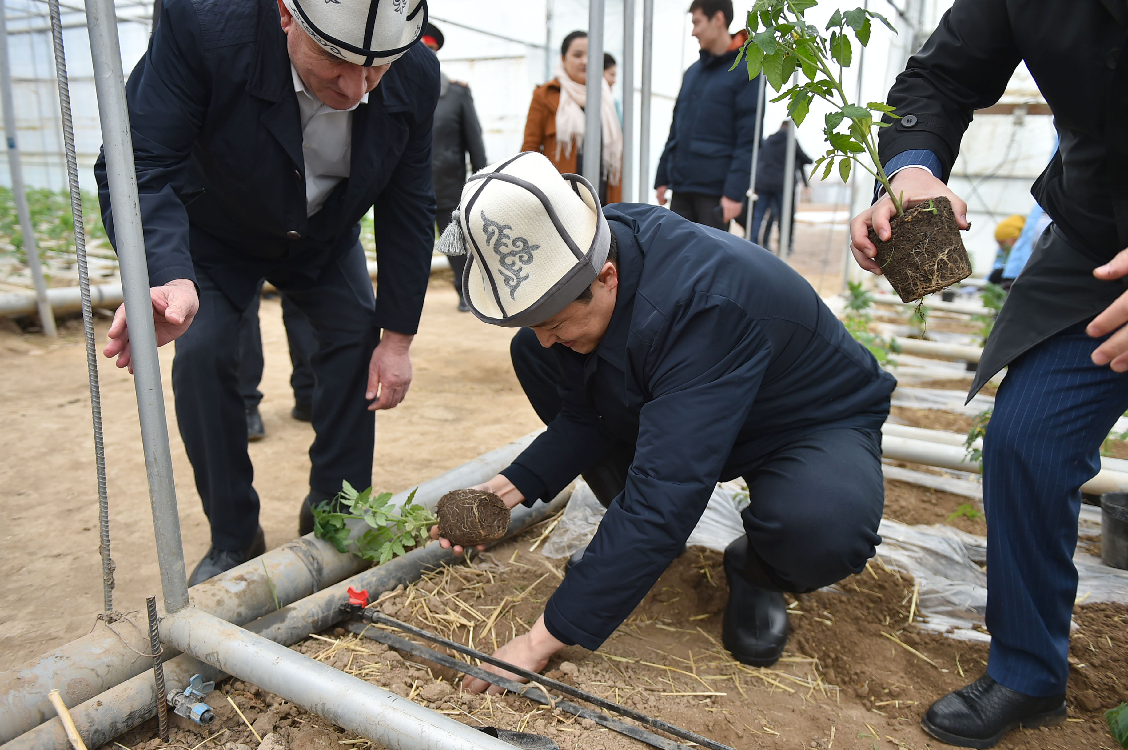 Өкмөт башчыга айыл чарба өсүмдүктөрүн өстүрүү технологияларын жана күнөскана комплексинде киргизилип жаткан жаңыча ыкмаларын көрсөтүп беришти.
