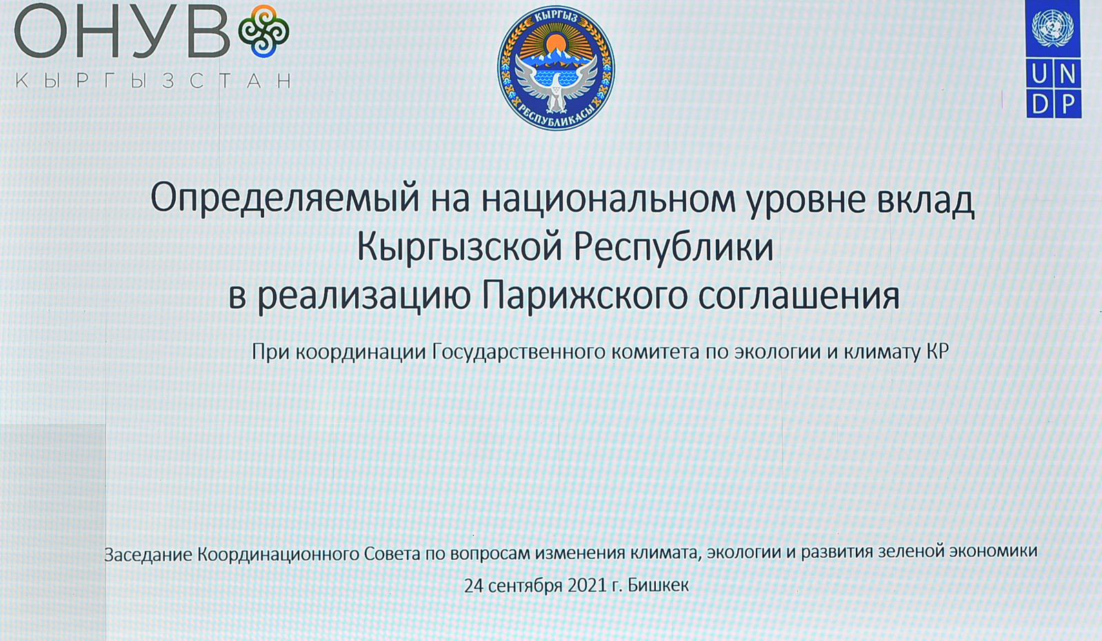 Жыйынтыгы боюнча кеңешменин күн тартибиндеги бардык маселелер, анын ичинде жакында БУУ КӨАК катчылыгына сунушталуучу «Кыргыз Республикасынын улуттук деңгээлде аныкталган салымы» (УДАС) документи жактырылды.