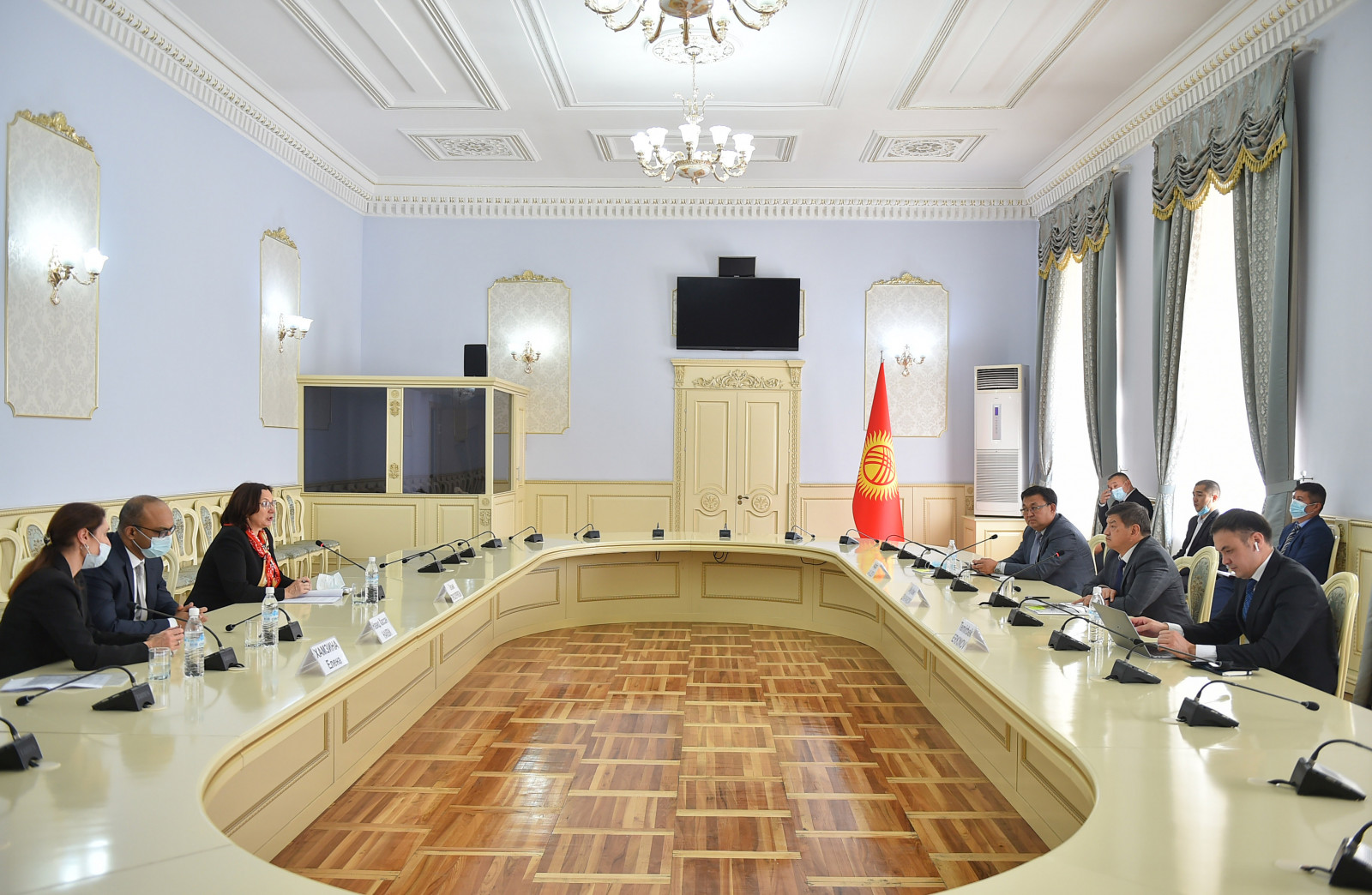 Кыргыз Республикасынын Министрлер Кабинетинин Төрагасы Акылбек Жапаров Дүйнөлүк банктын Борбор Азия өлкөлөрү боюнча аймактык директору Татьяна Проскурякова менен жолугушту.