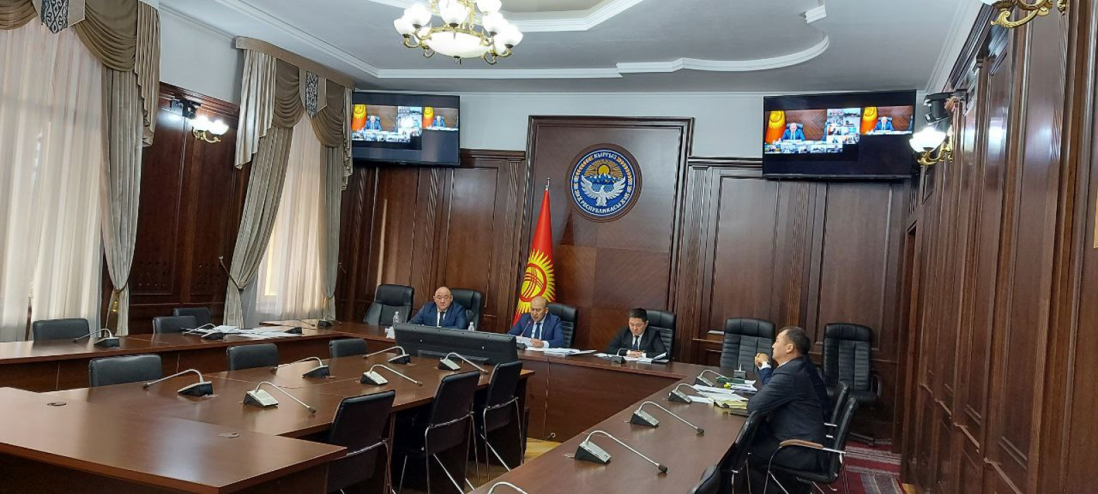 Кыргыз Республикасынын Президентинин жана Министрлер Кабинетинин чечимдерин даярдоо боюнча башкармалыгынын начальниги Алтынбек Эргешов эпидемиологиялык кырдаалдын курчушуна байланыштуу видеоконференцбайланыш режиминде өткөн Президенттин Чүй облусундагы ыйгарым укуктуу өкүлчүлүгүнүн коллегиясынын жыйынына катышты.
