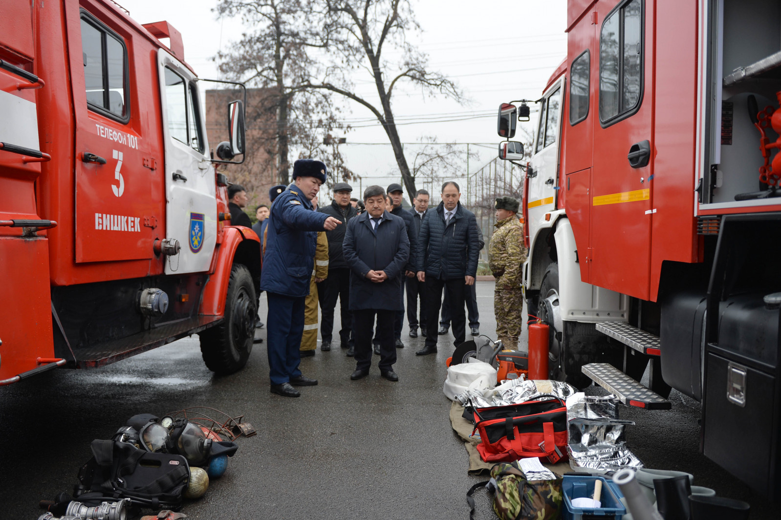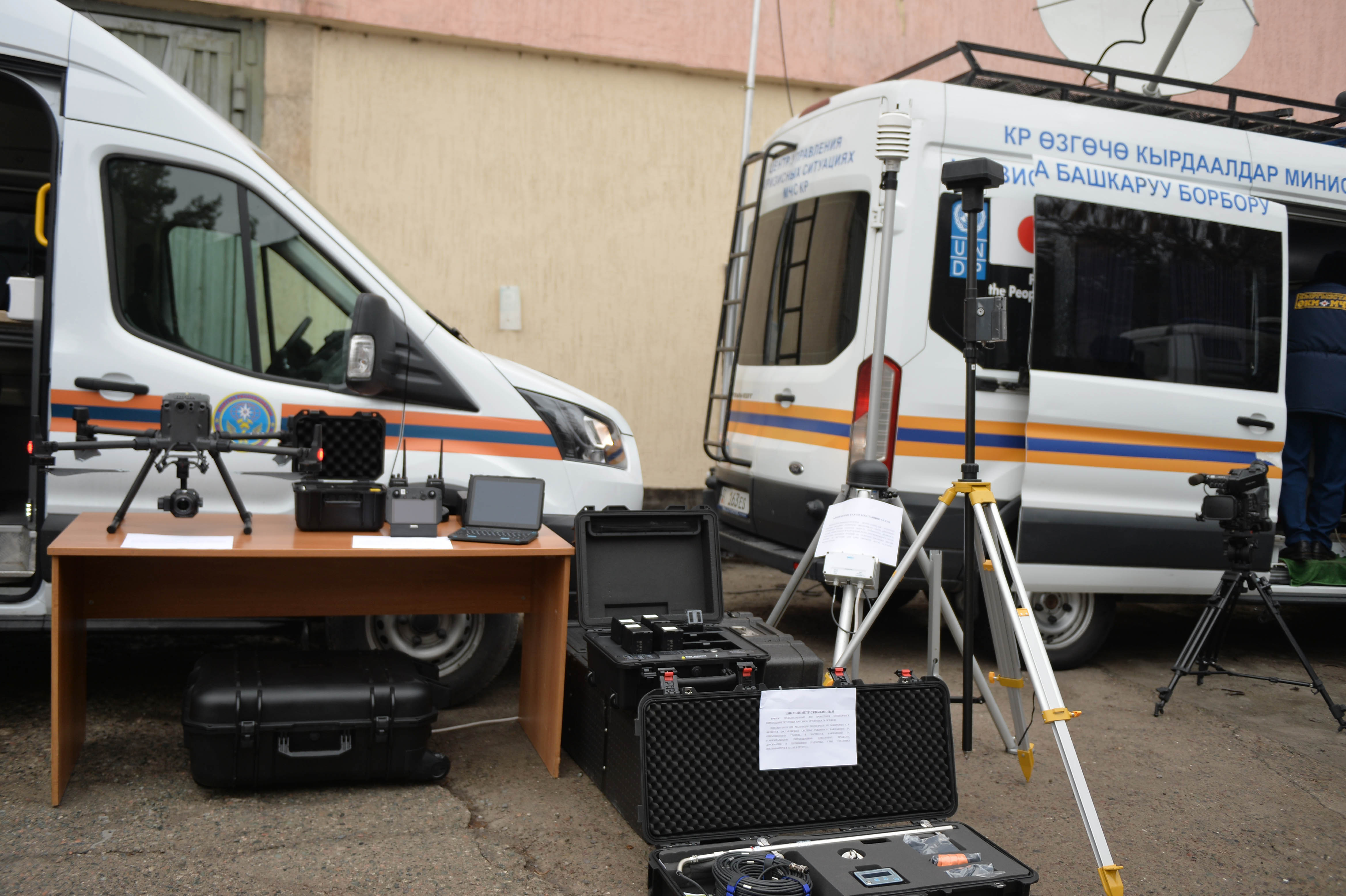 Акылбек Жапаровго кырсык болгон аймактагы адамдарды издөөгө каралган жабдуулар, радиациялык нурланууну өлчөөчү приборлор, метеорологиялык маалыматтарды жана жер титирөө жана башка табигый кырсыктарды алдын-ала кабарлоо системасынын маалыматтарын чагылдырган видеосистемалар көрсөтүлдү.