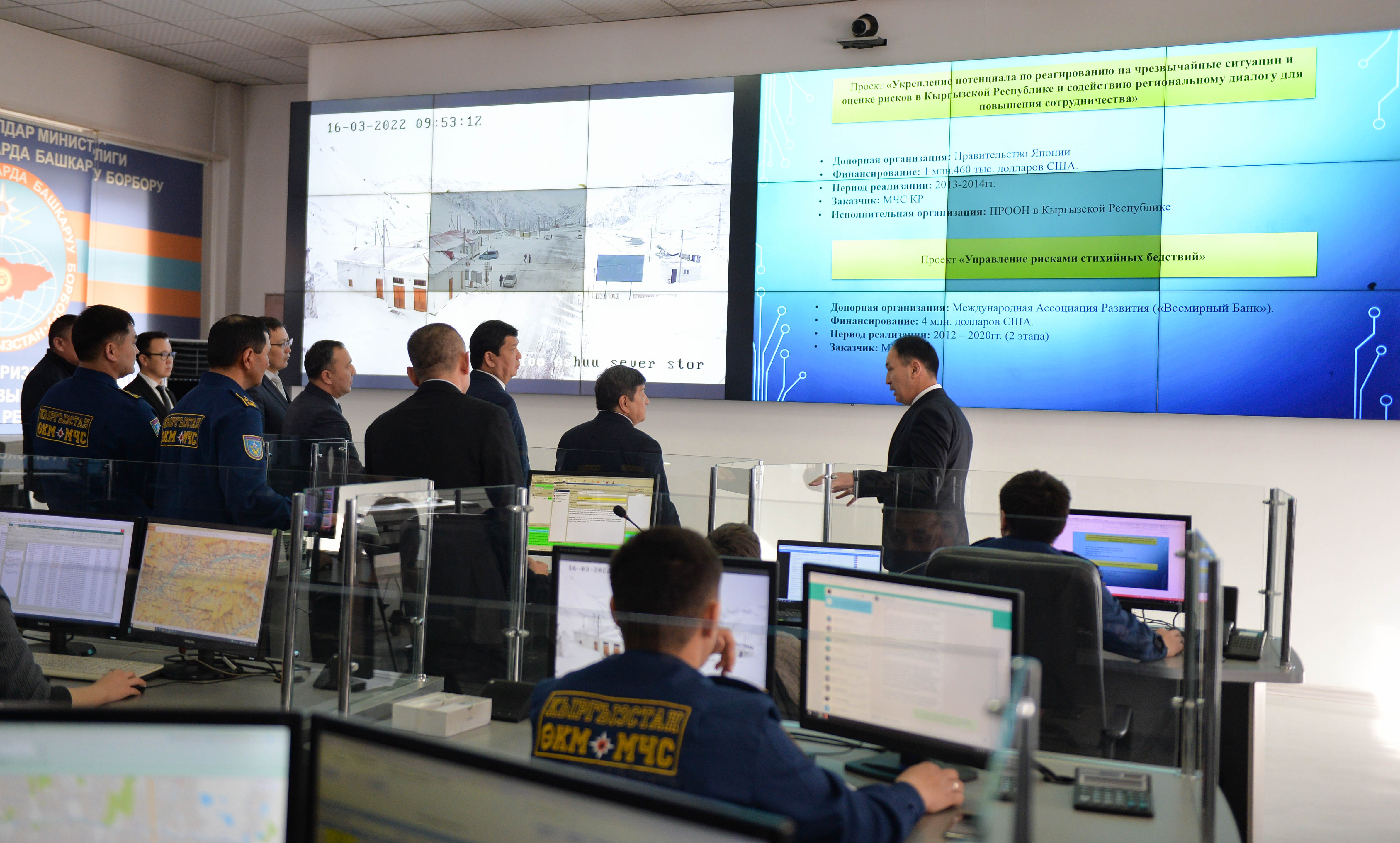 Кыргыз Республикасынын Министрлер Кабинетинин Төрагасы Акылбек Жапаров Кыргыз Республикасынын Өзгөчө кырдаалдар министрлигинин Кризистик кырдаалдарда башкаруу борборунун техникалык мүмкүнчүлүктөрү менен таанышты.
