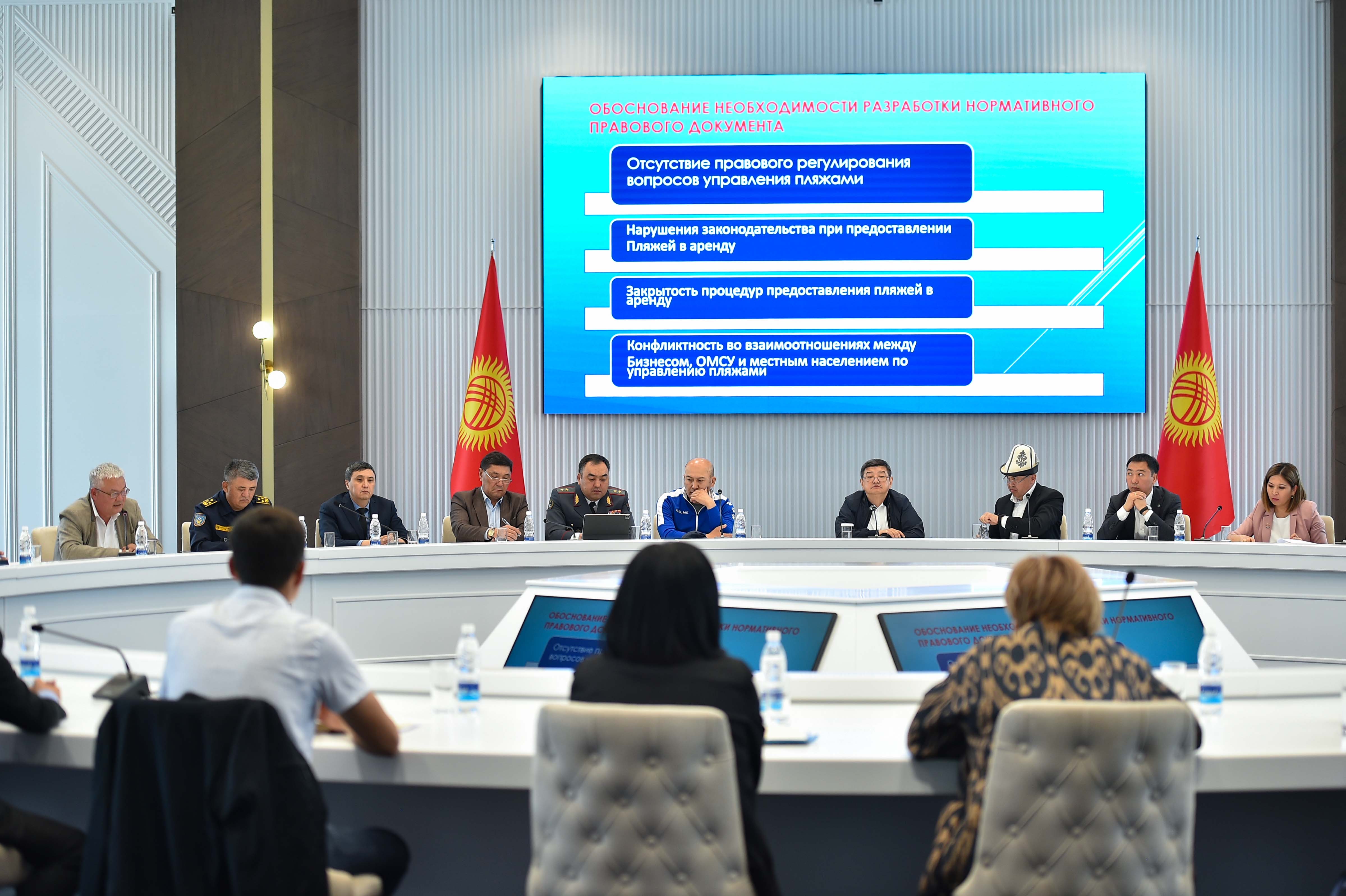 Жыйында негизинен Кыргыз Республикасынын Президентинин “Ысык-Көл облусунун тургундарынын пляж аймактарына кирүү укугун камсыз кылуу жөнүндө” жана “Ысык-Көл экологиясын сактоо боюнча кечириктирилгис чаралар жөнүндө” жарлыктарын ишке ашыруу максатында сөз болду.