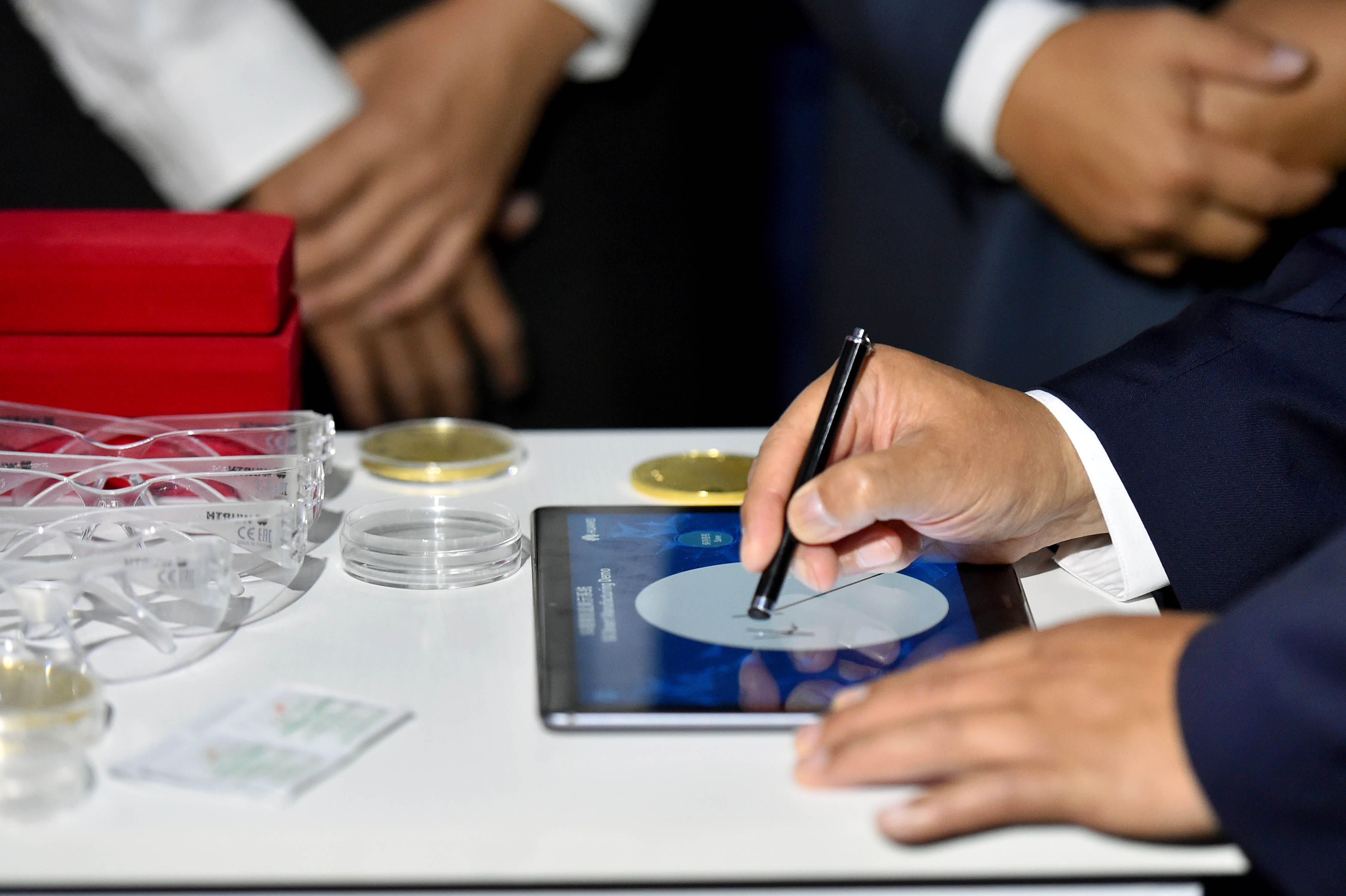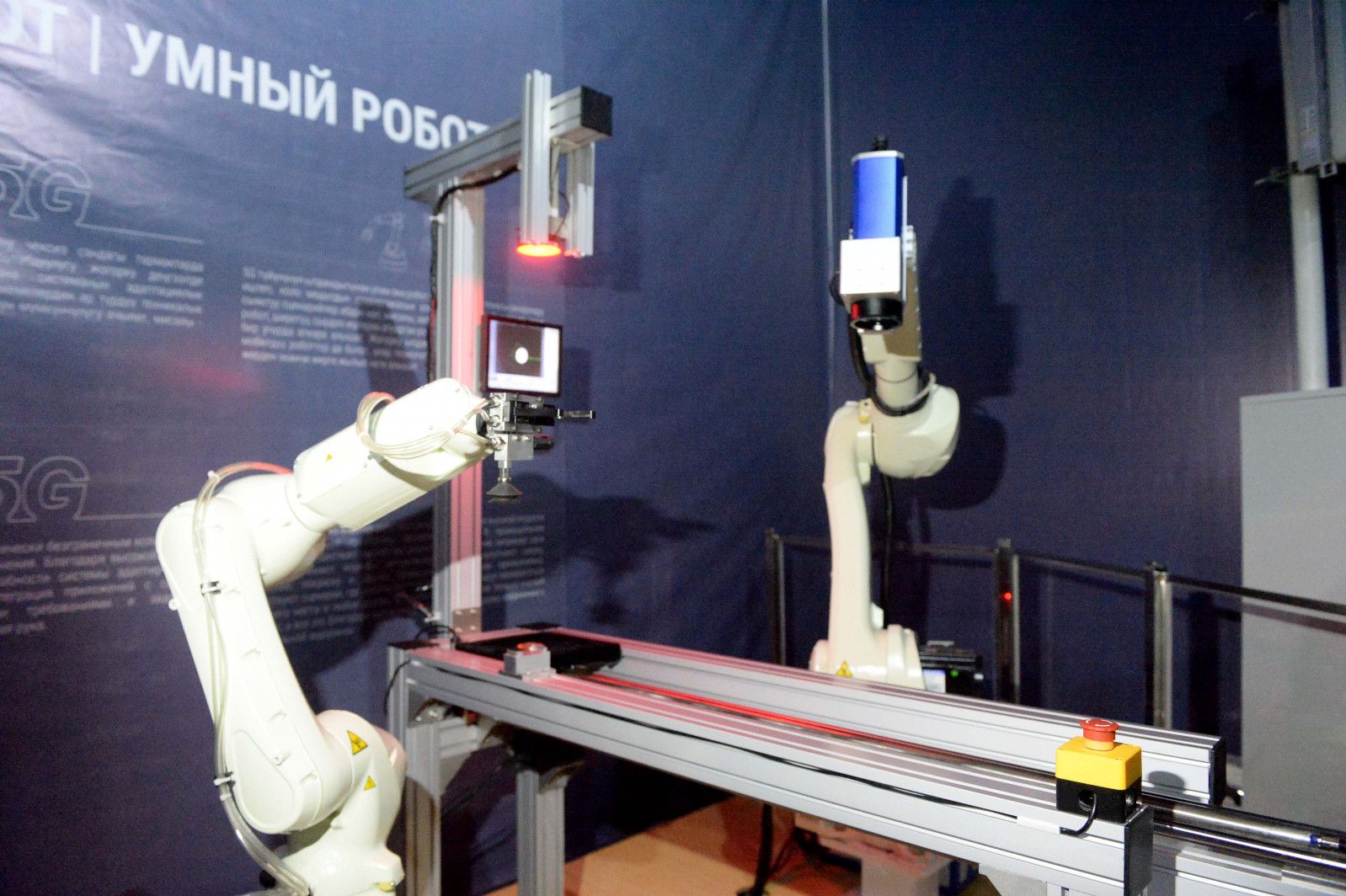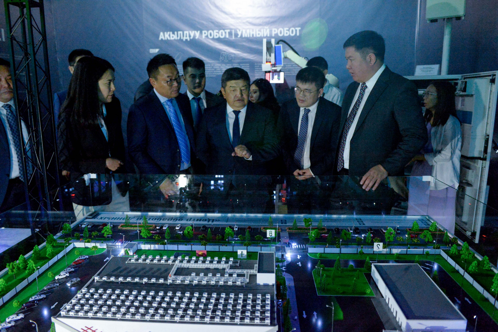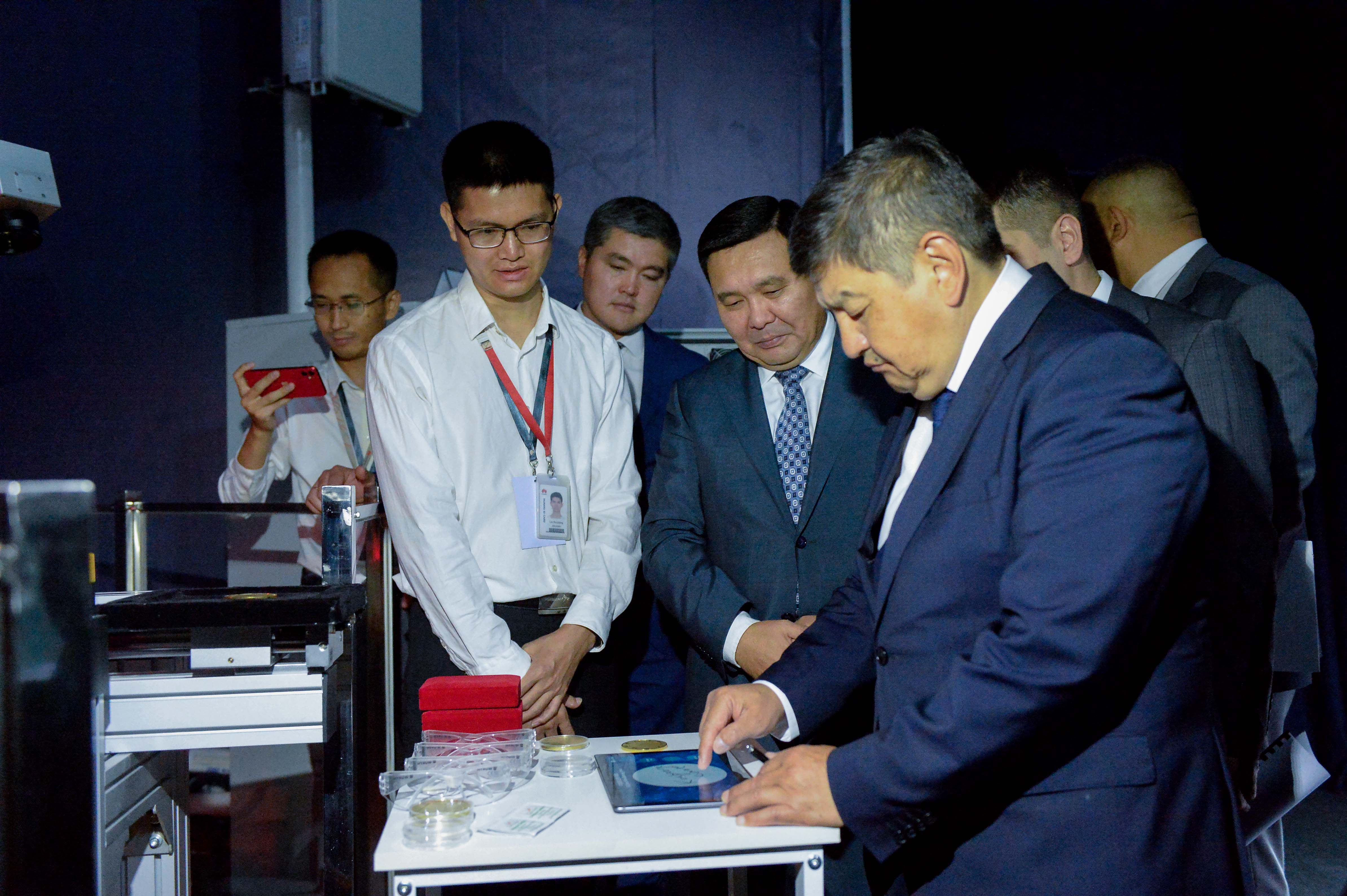Министрлер Кабинетинин башчысы павильондо санариптик технологиялар чөйрөсүндөгү акыркы жетишкендиктер, анын ичинде 5G технологиясынын иштөө модели, виртуалдык реалдуулук системасы, 5G Industrial тармагынын базасында иштеген өнөр жай роботунун иштеши менен таанышты.