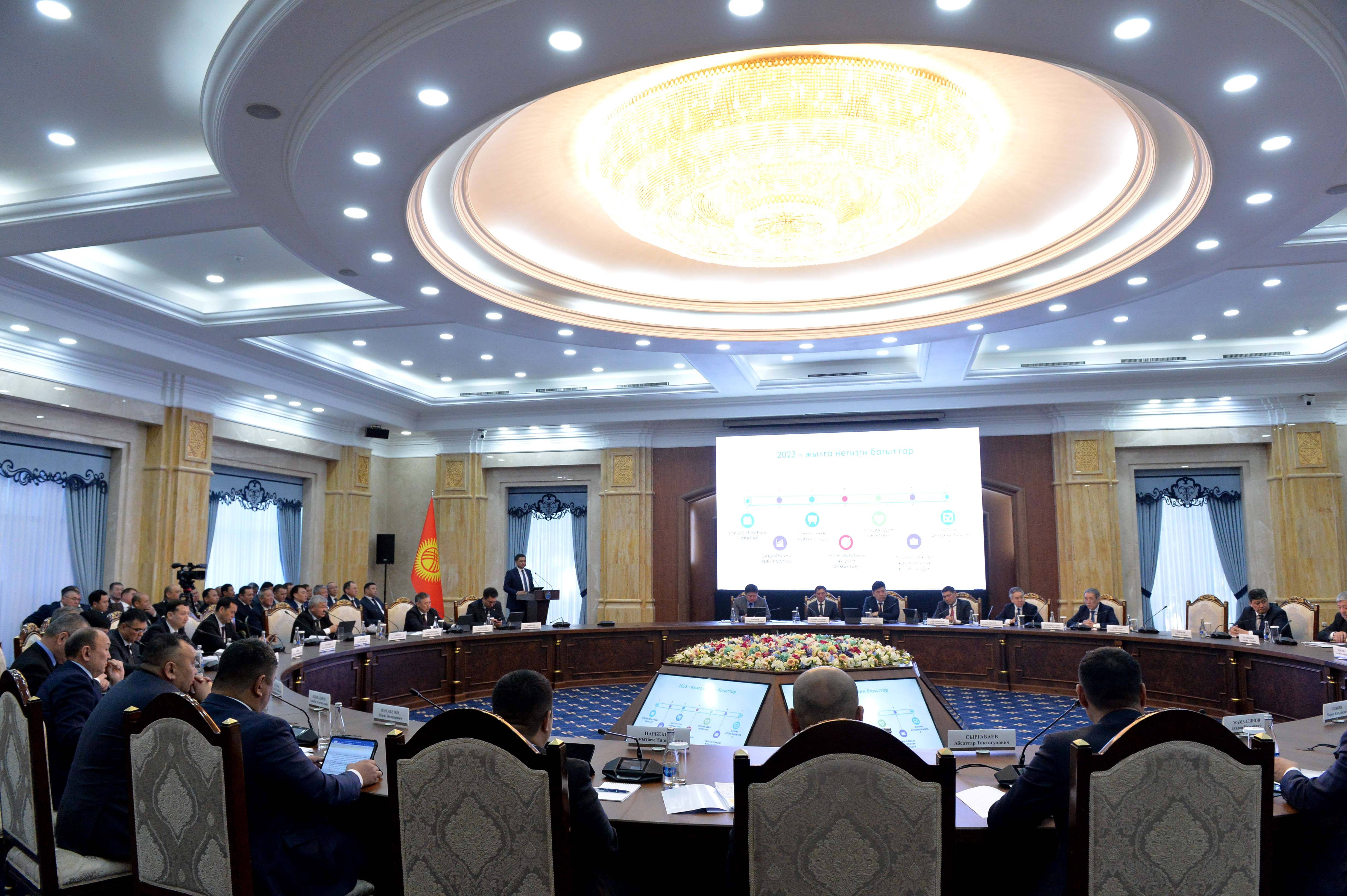 Кыргыз Республикасынын Министрлер Кабинетинин Төрагасы – Кыргыз Республикасынын Президентинин Администрациясынын Жетекчиси Акылбек Жапаров райондук мамлекеттик администрациялардын жана жергиликтүү өз алдынча башкаруу органдарынын жетекчилеринин катышуусунда өткөн республикалык кеңешмеде аймактарды комплекстүү өнүктүрүү пландары жөнүндө айтып берди.