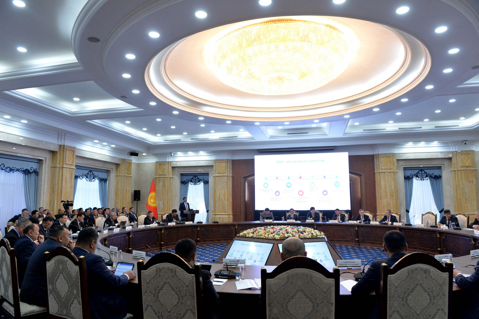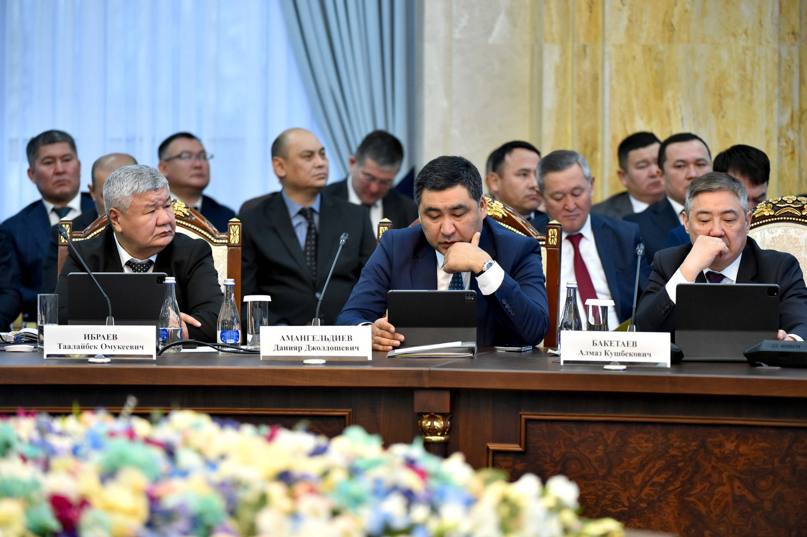 Жыйындын жүрүшүндө бир катар министрликтердин жетекчилеринин жана Кыргыз Республикасынын Президентинин облустардагы ыйгарым укуктуу өкүлдөрүнүн отчеттору угулду.