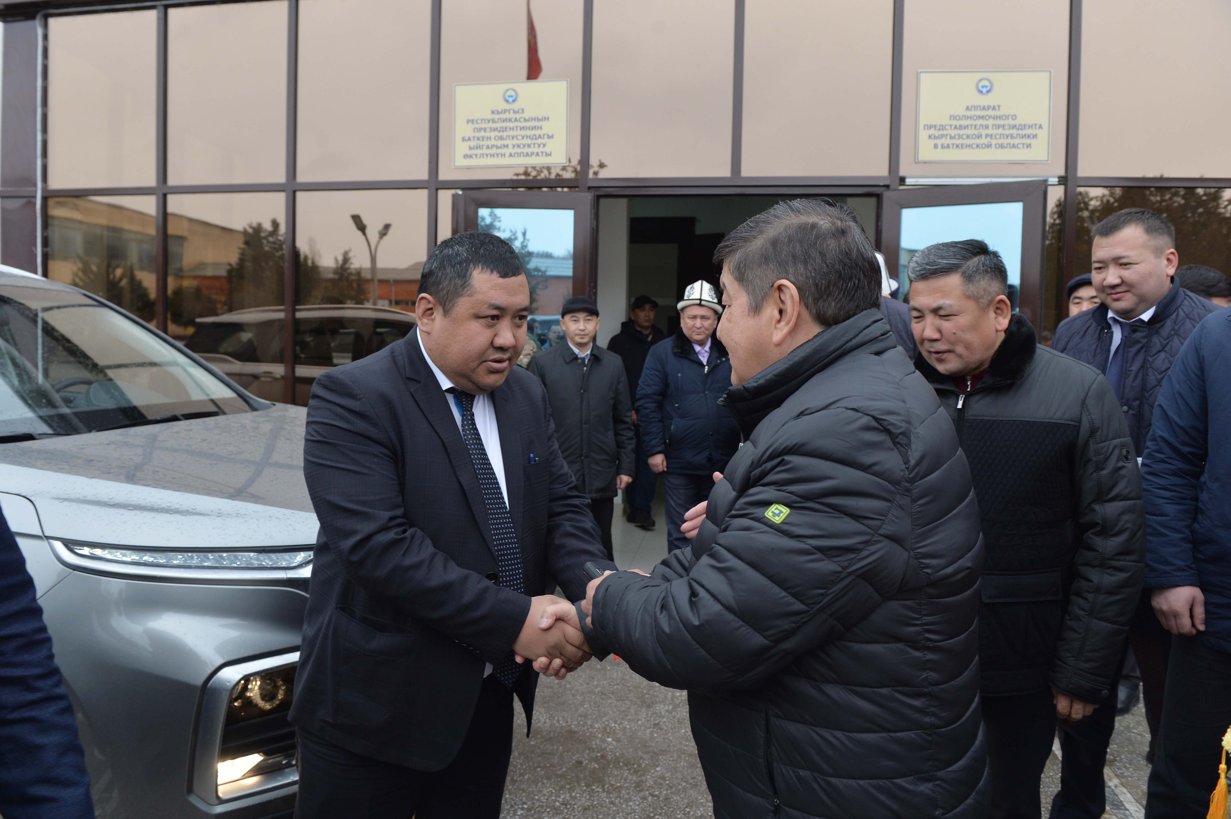 Баткен облусунда иш сапары менен жүргөн Кыргыз Республикасынын Министрлер Кабинетинин Төрагасы – Кыргыз Республикасынын Президентинин Администрациясынын Жетекчиси Акылбек Жапаров Баткен облусундагы жетекчилерге кызматтык унааларды тапшырды.