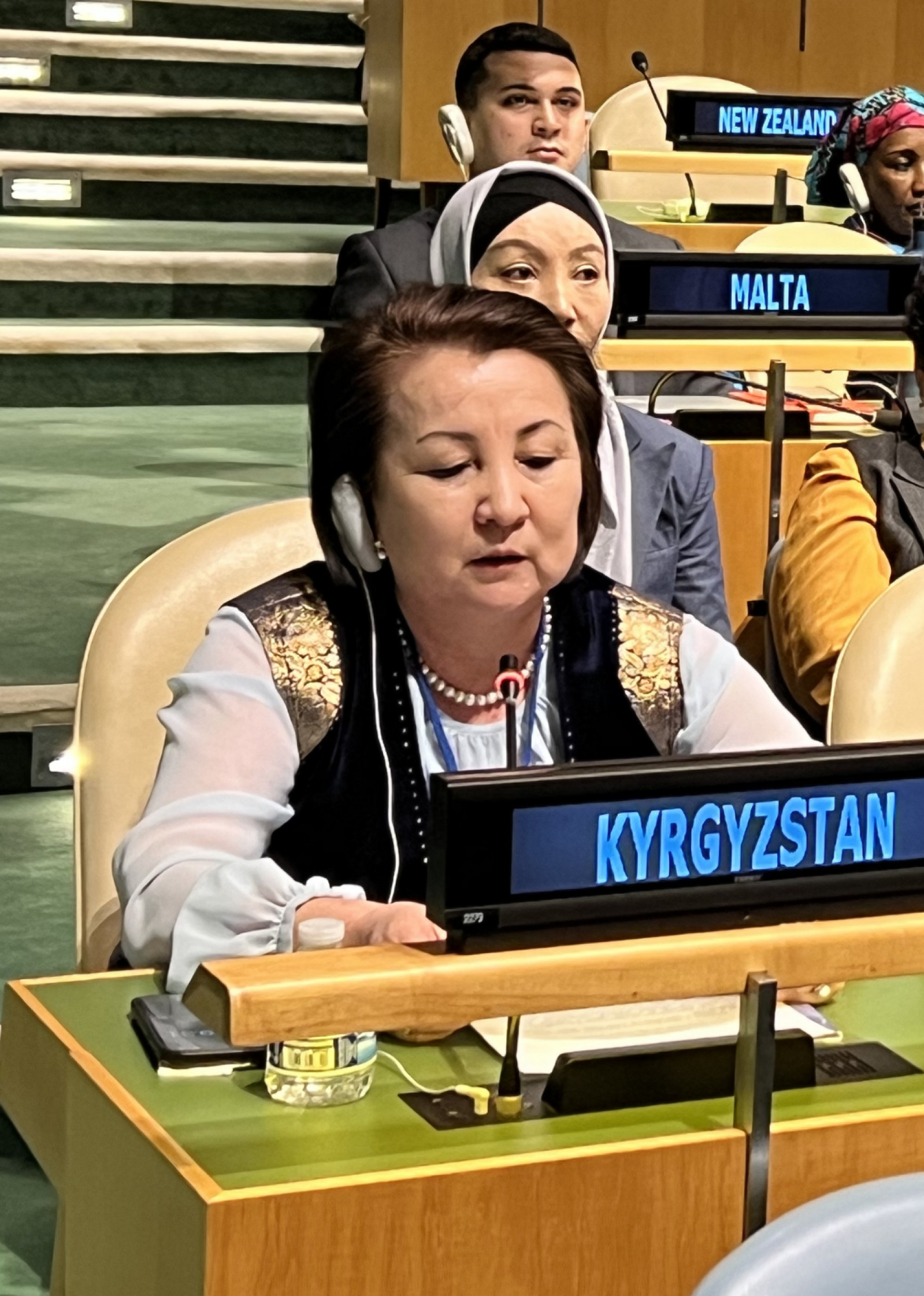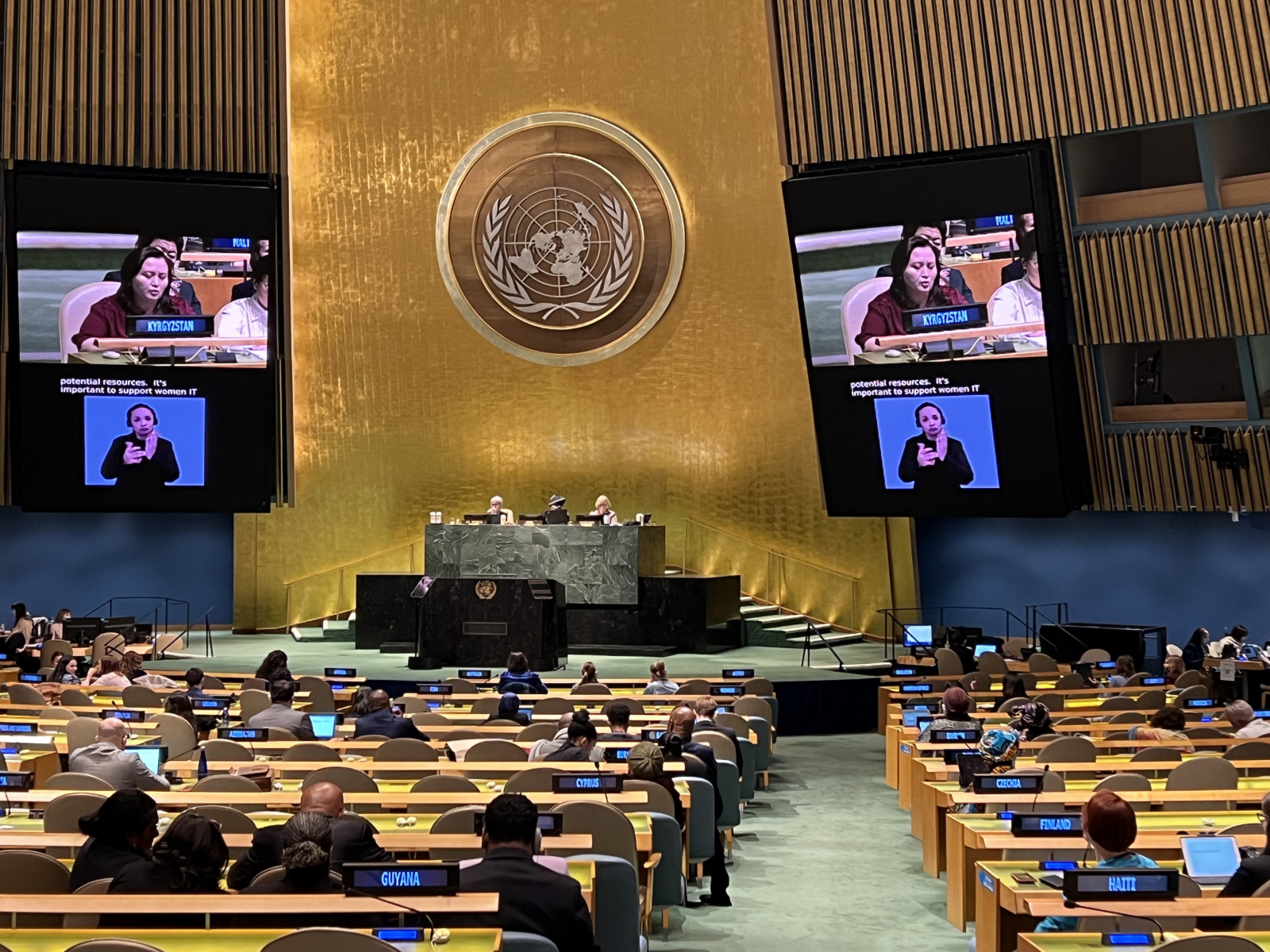 Жалпы дебатта делегациянын башчысы улуттук стратегияларда белгиленген өлкөнүн санариптик трансформациясынын жетишкендиктерин жана багыттарын, анын ичинде санариптештирүү процессинин бөлүгү катары IT-технологияларды колдонуу жана климаттын өзгөрүшүнө адаптациялоо боюнча чаралар аялдардын жана кыздардын мүмкүнчүлүктөрүн кеңейтүүнүн негизги инструменти катары экенин белгиледи.