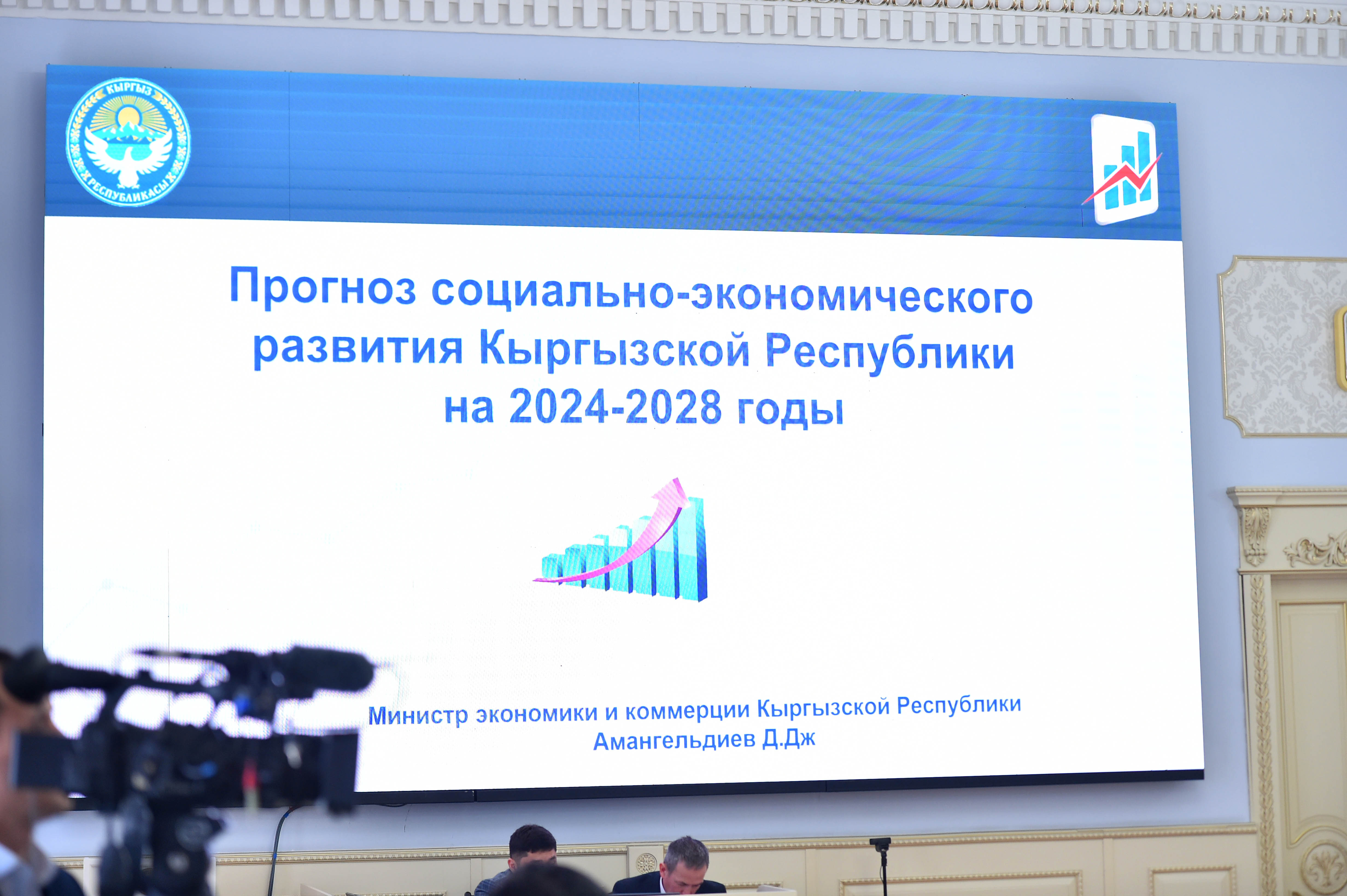 Отурумдун жыйынтыгында орто мөөнөттүү мезгилге (2024-2028-жылдарга) Кыргыз Республикасын социалдык-экономикалык өнүктүрүүнүн сунушталып жаткан базалык сценарийин колдоо чечими кабыл алынды, ага ылайык 2023-жылга экономиканын өсүү темпи 104,5% деңгээлинде күтүлүүдө.