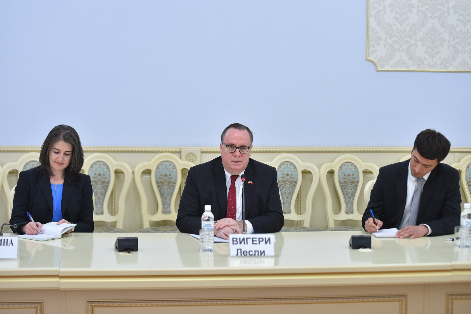 Кыргыз Республикасынын Президентинин Администрациясынын маалыматтык саясат кызматынын жетекчиси Дайырбек Орунбеков Америка Кошмо Штаттарынын Кыргыз Республикасындагы Атайын жана Ыйгарым укуктуу Элчиси Лесли Вигери менен жолукту.