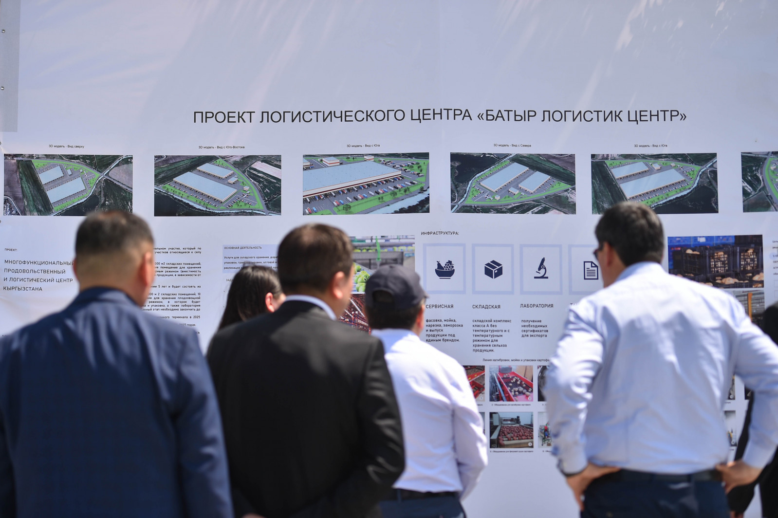 Андан ары Министрлер Кабинетинин Төрагасы Аламүдүн районундагы “Караван” соода-логистикалык борборуна барып, “Батыр логистикалык” борборунун логистикалык долбоору менен таанышты.