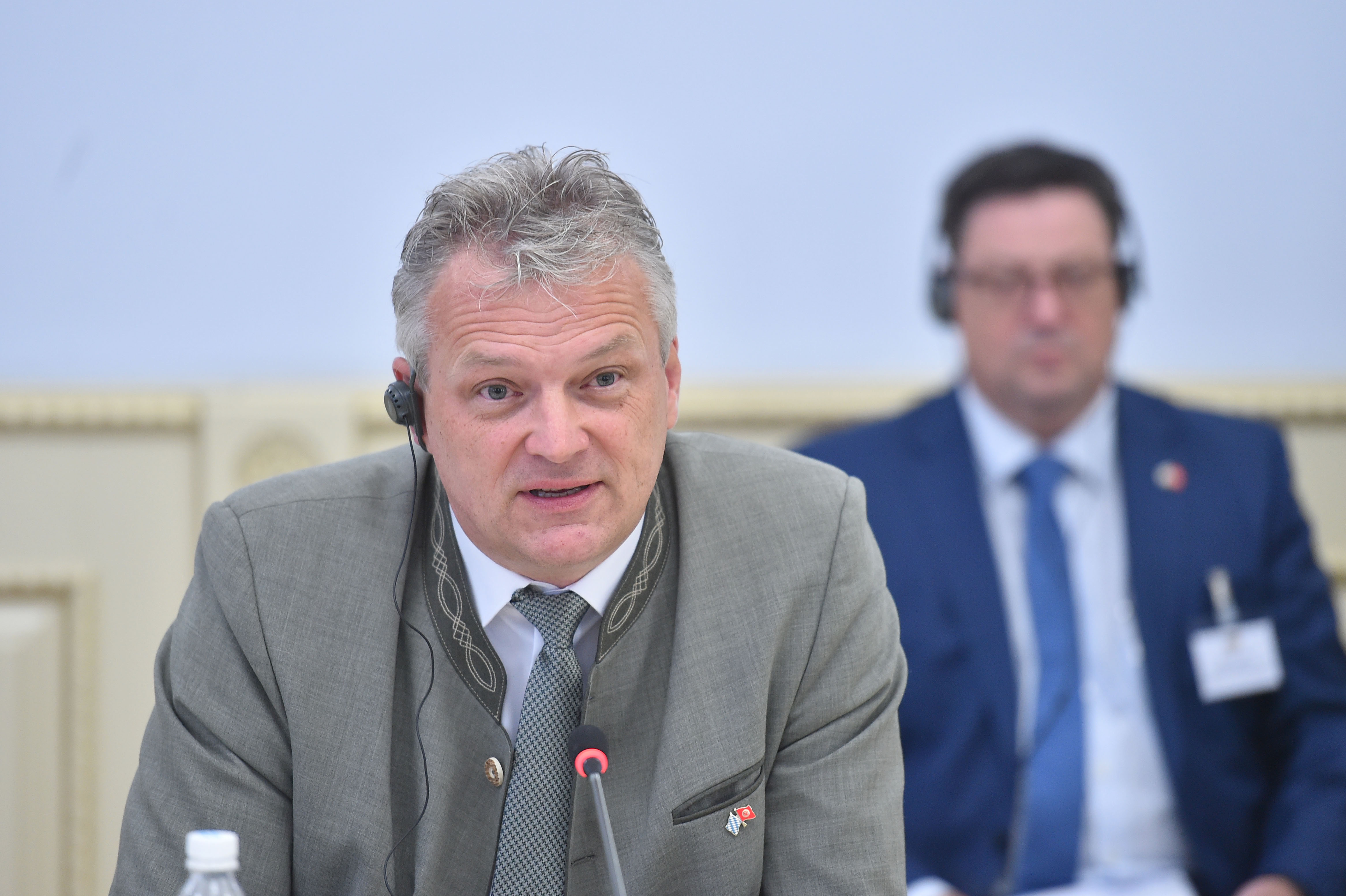 Кыргыз Республикасынын Министрлер Кабинетинин Төрагасы - Кыргыз Республикасынын Президентинин Администрациясынын Жетекчиси Акылбек Жапаров Бавариянын Экономика, аймактык өнүктүрүү жана энергетика мамлекеттик министрлигинин статс-катчысы Роланд Вайгерт башында турган Германия Федеративдүү Республикасынын делегациясы менен жолукту.