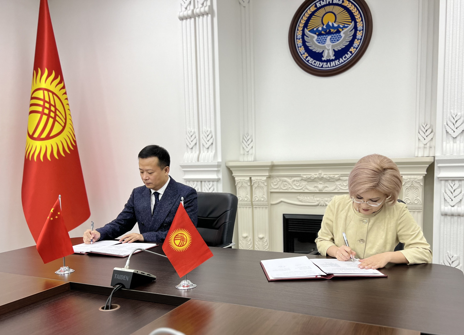 Кыргыз Республикасынын Санариптик өнүктүрүү министри Нурия Кутнаева жана "Жибек жолу" өнөр жай интернетин илгерилетүү борборунун башкы директору Ян Юн Шанкай кызматташтык уюмуна (ШКУ) мүчө мамлекеттердин башчыларынын илим, технология жана инновация жаатындагы кызматташтыкты бекемдөө боюнча билдирүүсүн ишке ашыруунун алкагында санариптештирүү жаатында өз ара түшүнүшүү жана кызматташуу жөнүндө меморандумга кол коюшту.
