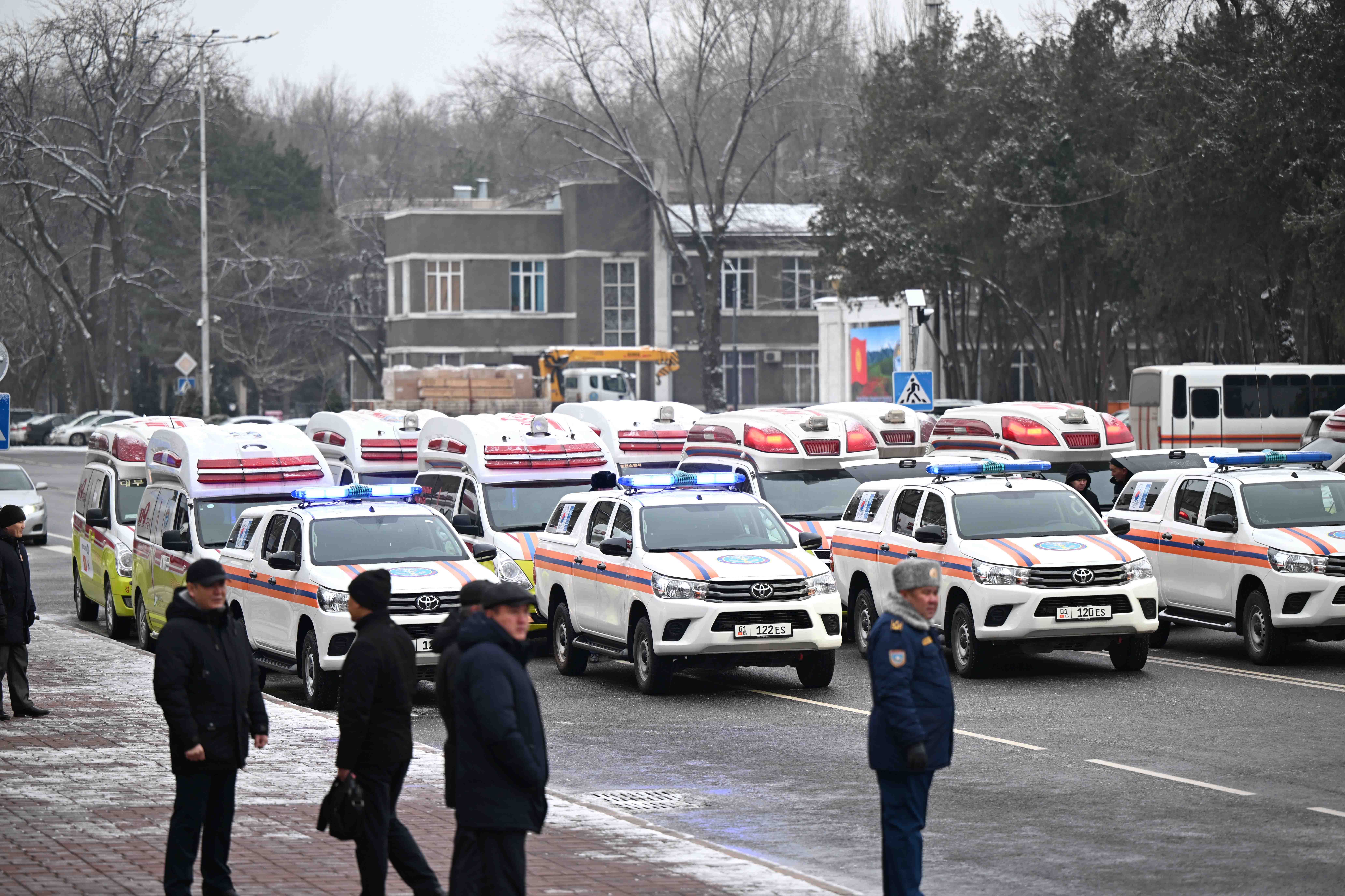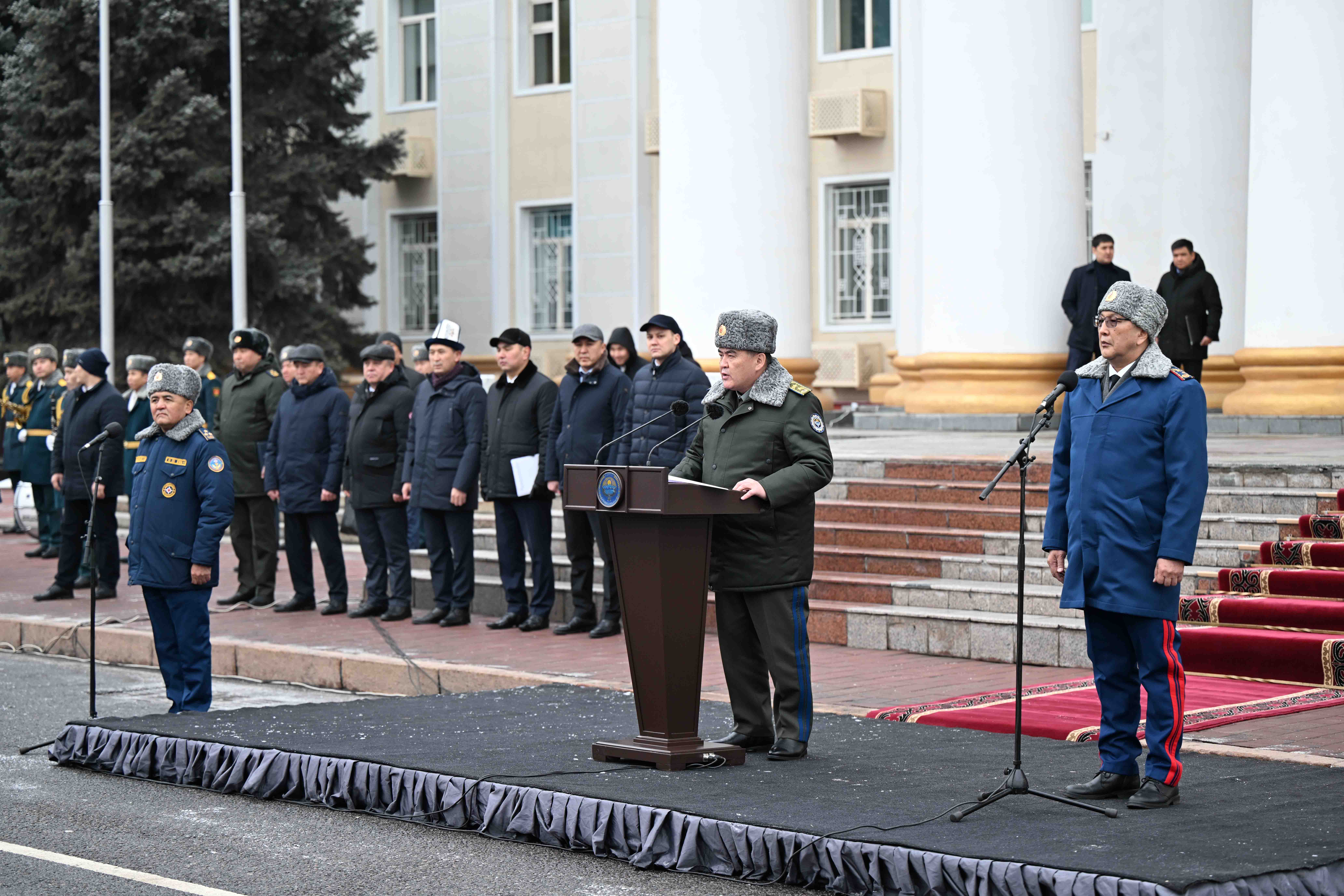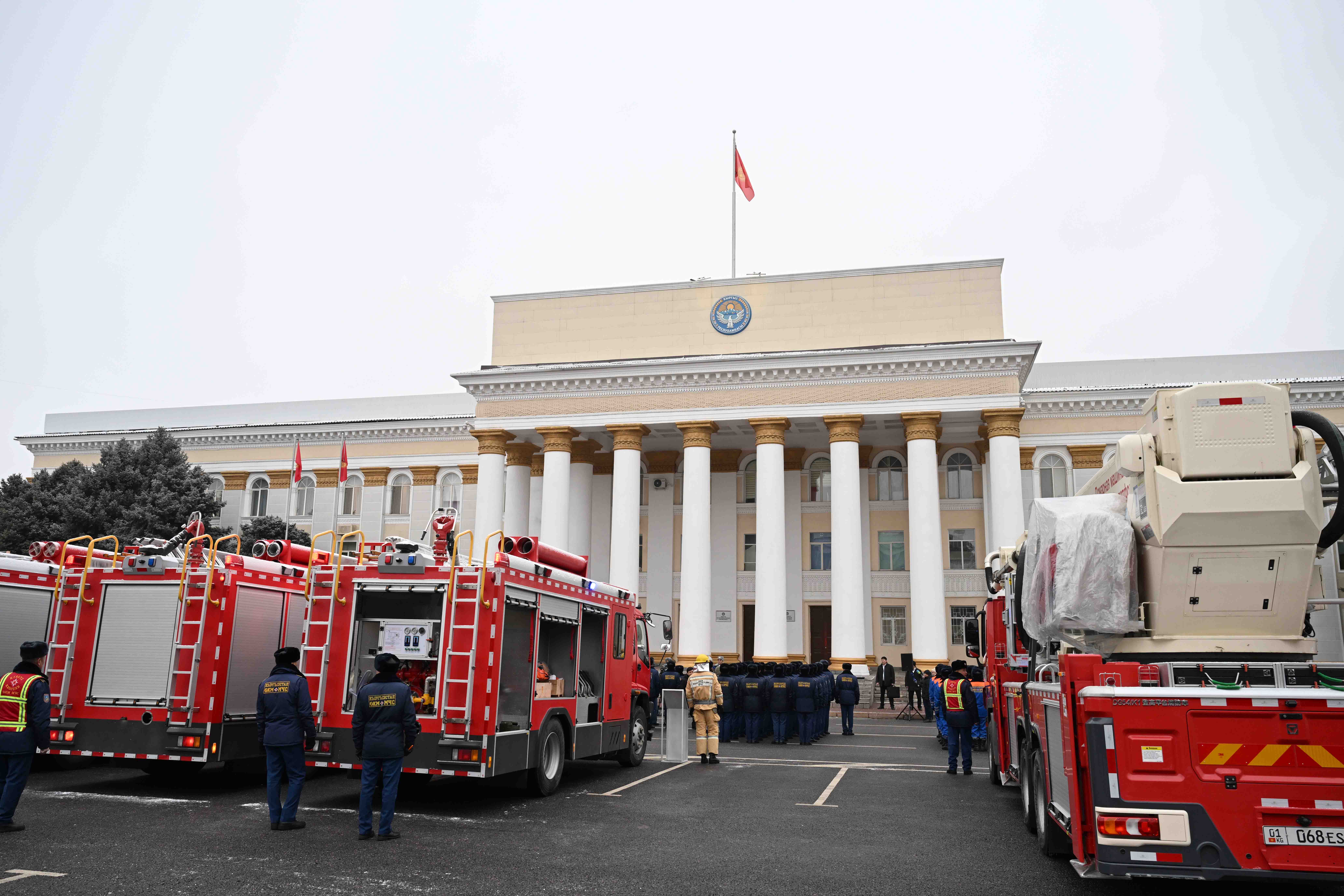 Кыргыз Республикасынын Өзгөчө кырдаалдар министрлигине техникаларды тапшыруу аземине Кыргыз Республикасынын Министрлер Кабинетинин Төрагасынын орун басары Камчыбек Ташиев катышты.