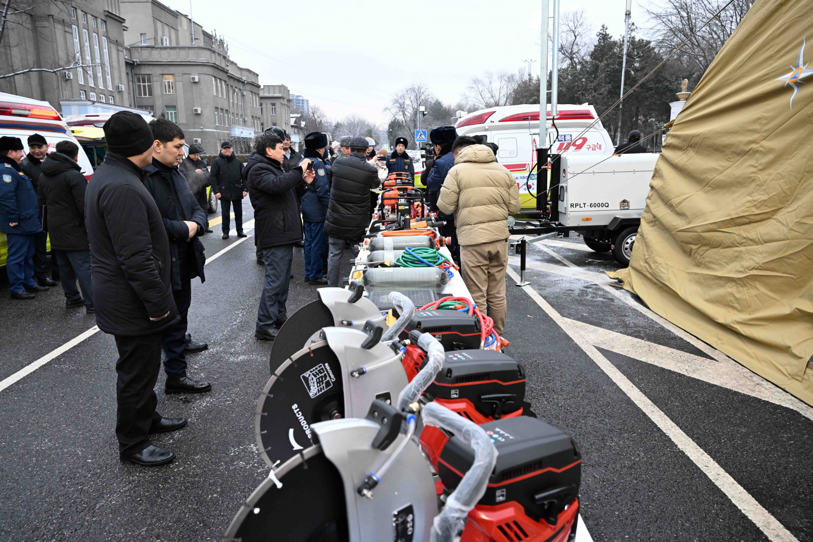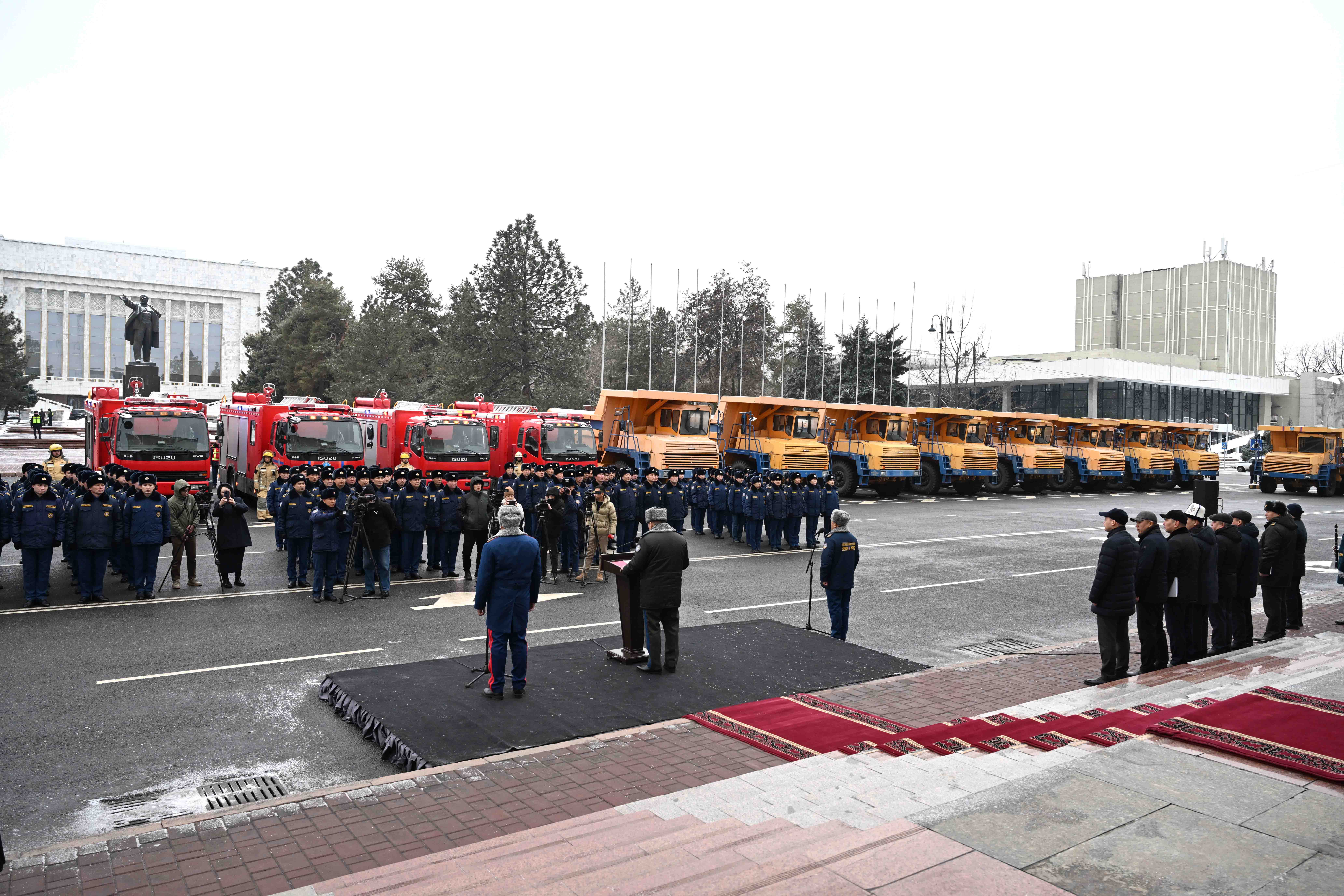 «Бүгүн биз Өзгөчө кырдаалдар министрлигине 28 даана атайын техника өткөрүлүп берилгенине күбө болдук, анын ичинен 10 даанасы Белоруссиядан алынып келинген БЕЛАЗ-7540Б үлгүсүндөгү чоң самосвал, 4 заманбап медициналык жана 4 өрт өчүрүүчү машина жана башка заманбап куткаруу техникасы. Куткаруу шаймандары алууга республикалык бюджеттен 35 миллион сом бөлүндү», - деп баса белгиледи Камчыбек Ташиев.