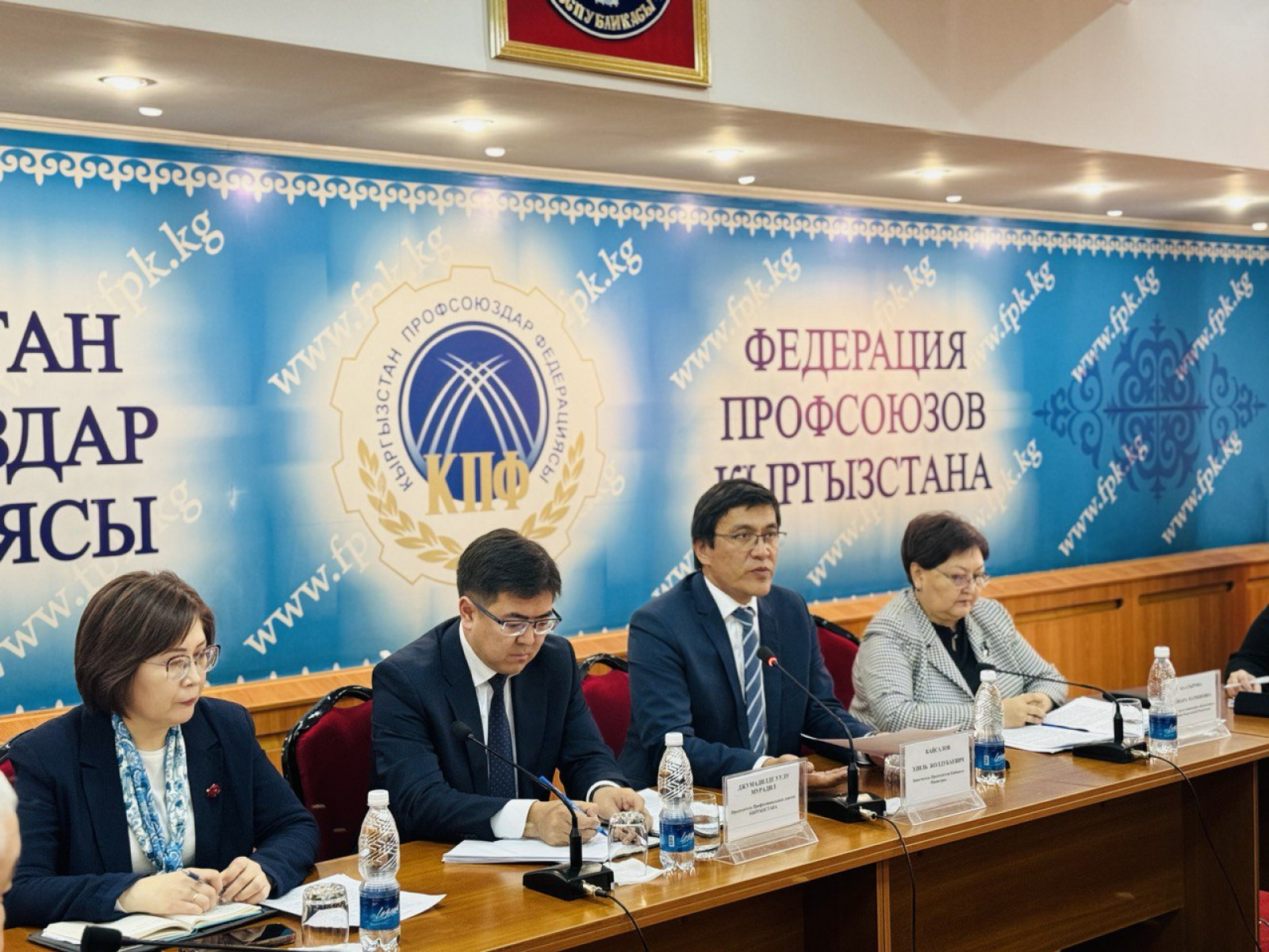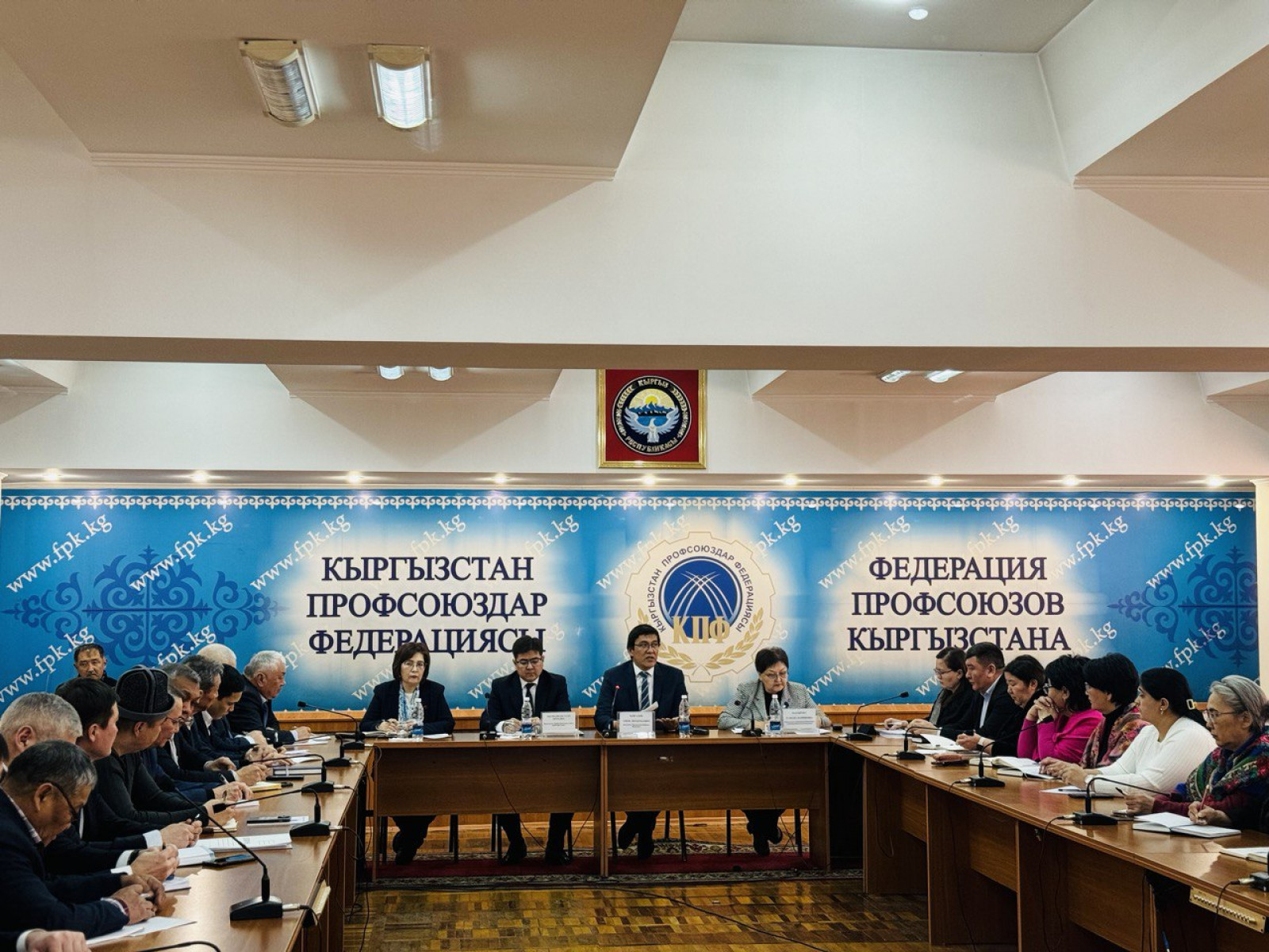 Кыргыз Республикасынын Министрлер Кабинетинин Төрагасынын орун басары Эдил Байсалов өлкөнүн Профсоюздар федерациясынын Борбордук Комитетинин жаңы жетекчиси жана федерациянын курамы менен жолукту.