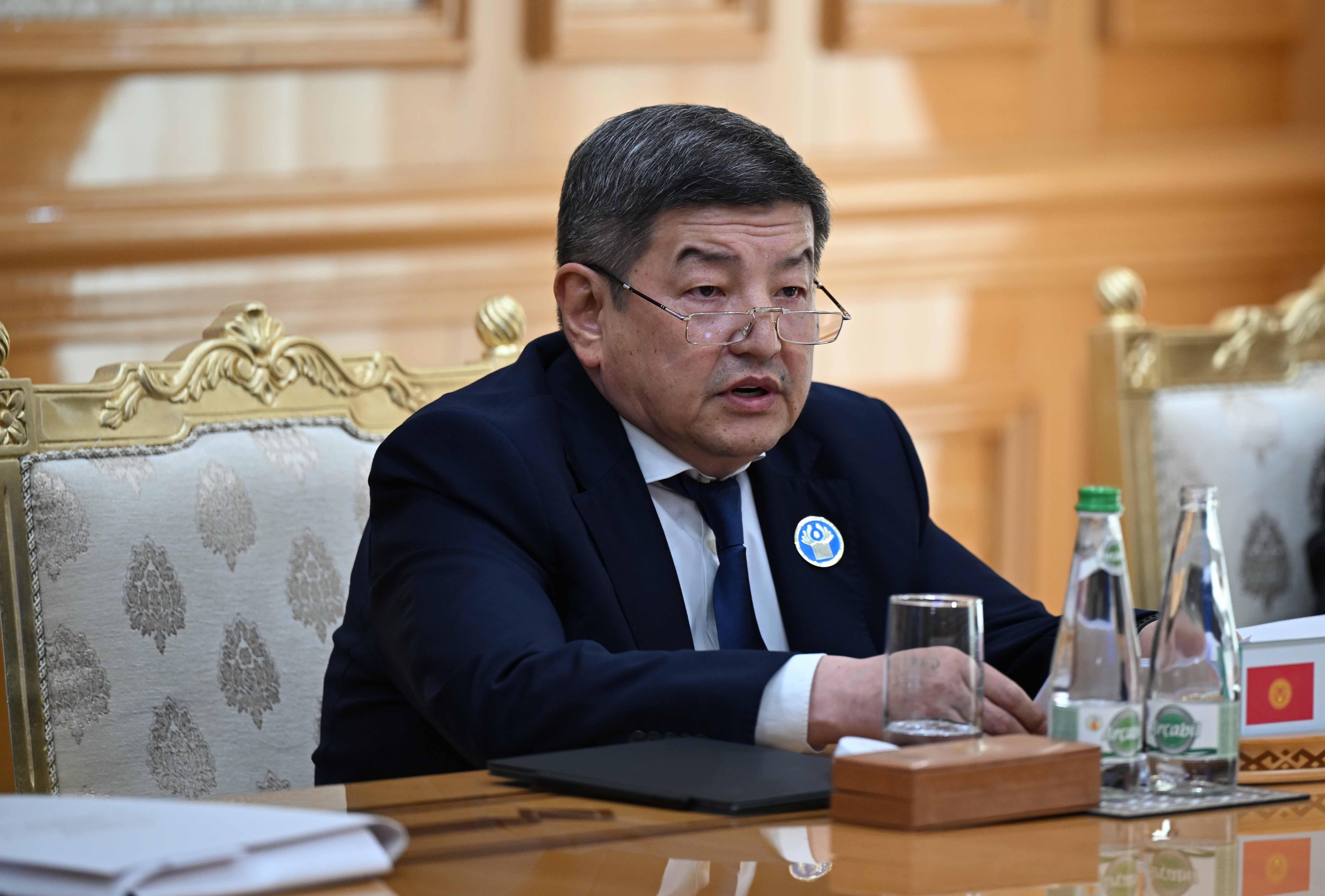 "2019-2023-жылдарга Кыргызстандын КМШ өлкөлөрү менен өз ара жана тышкы соодасынын көлөмү 1,6 эсеге, анын ичинде экспорт — 1,8 эсе, импорт — 1,5 эсе өстү. 2023-жылы КМШга мүчө-мамлекеттердин үлүшү, Кыргыз Республикасынын жалпы соода жүгүртүүсүнүн 33 пайызына туура келди"-деди Акылбек Жапаров.
