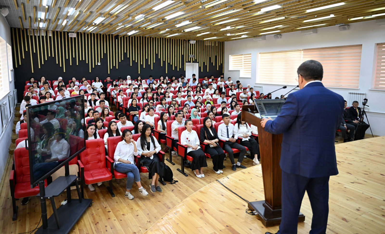 Министрлер Кабинетинин Төрагасы-Кыргыз Республикасынын Президентинин Администрациясынын Жетекчиси Акылбек Жапаров Ош облусуна жасаган иш сапарынын алкагында Ош мамлекеттик университетинин студенттери үчүн меймандык лекциясын окуду.
