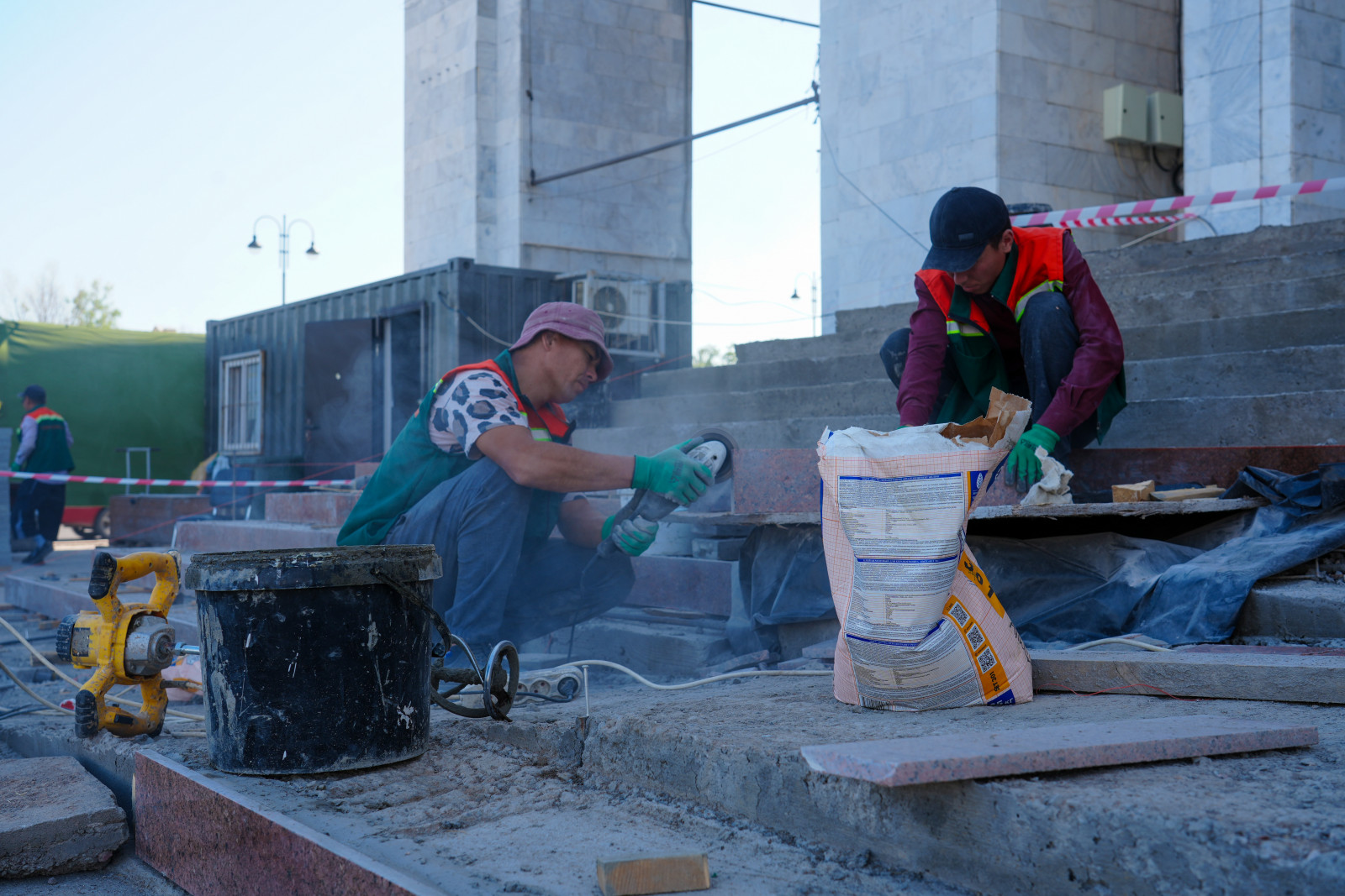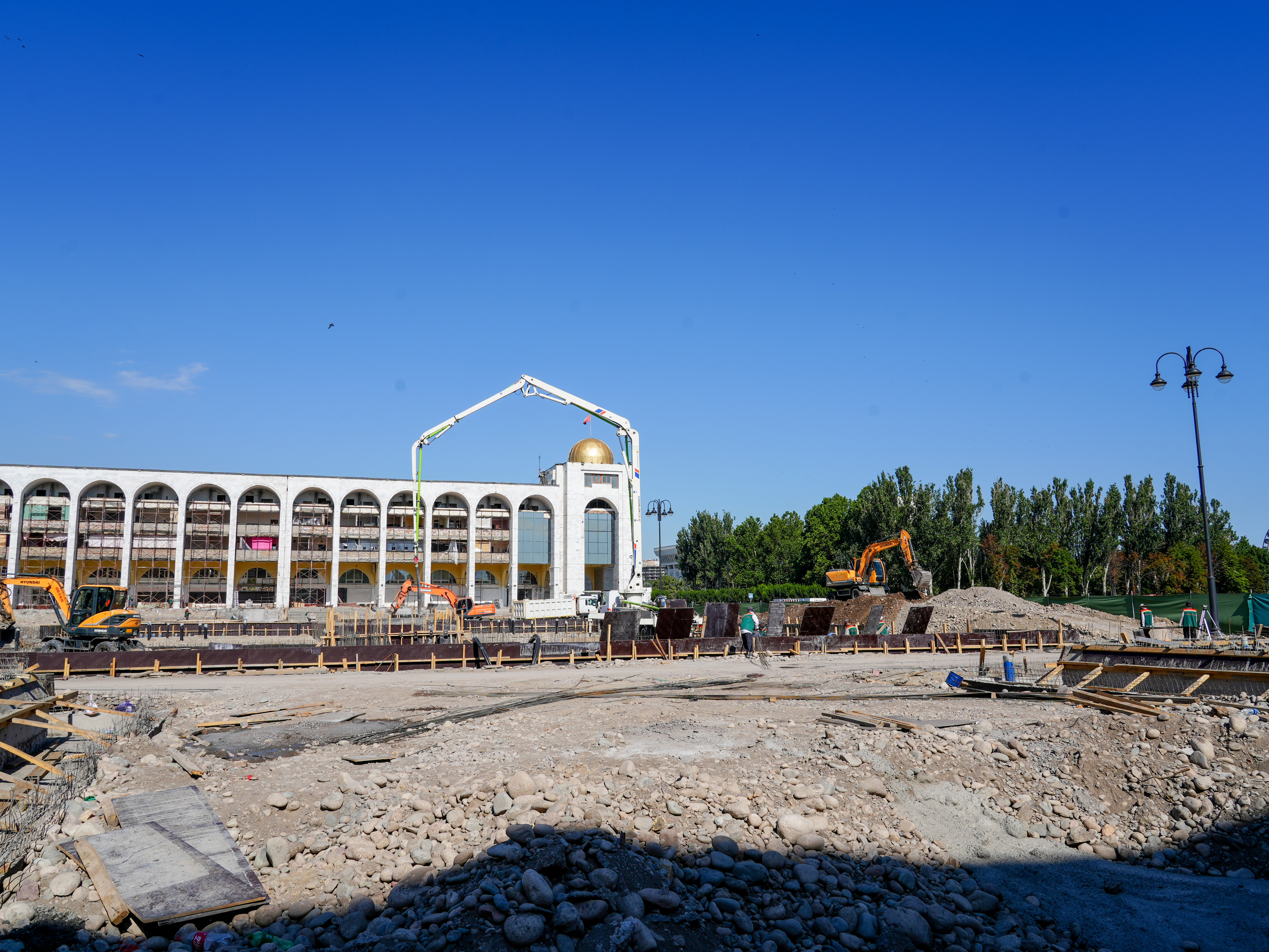Аянтка заманбап фонтан комплекстери орнотулат, ошондой эле 100 метр бийиктиктеги флагшток орнотуу иштери жүрүп жатат.