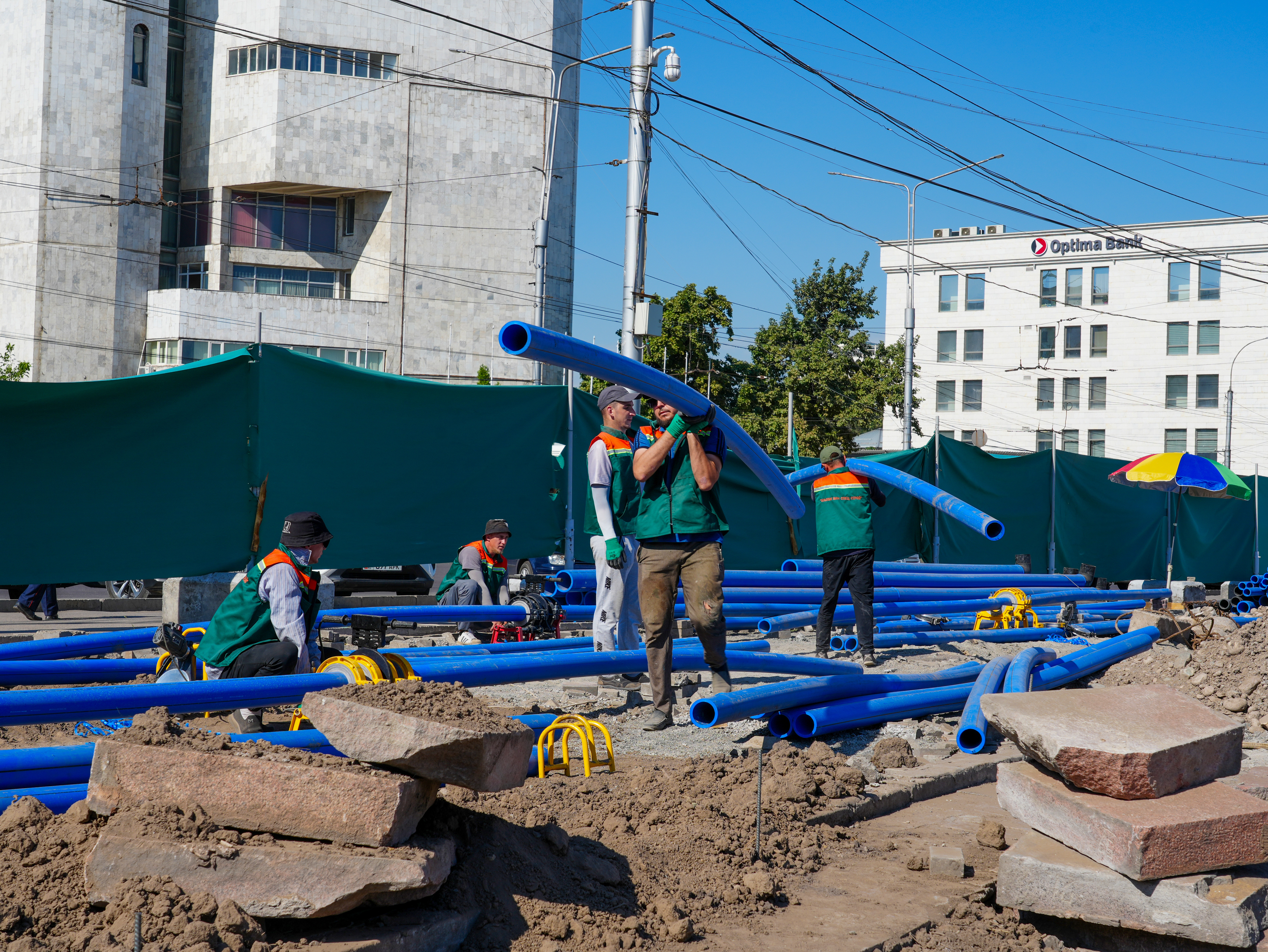 Ошондой эле, МинКаб Төрагасы Бишкектин Ахунбаев көчөсүнүн бир бөлүгүндөгү оңдоо иштеринин жүрүшү менен таанышты. Курулуш иштерин үстүбүздөгү жылдын августта бүтүрүү пландалууда.