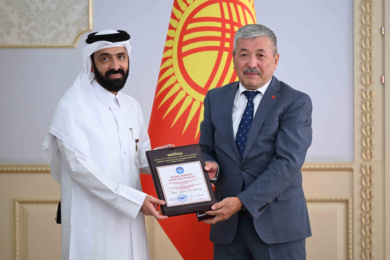 Наваф Абдулла Аль-Хаммади Катар кайрымдуулук фонду бир катар өлкөлөрдө, анын ичинде Кыргызстанда да жигердүү иш алып барып жатканын белгилеп, муктаждарга жардам берүүгө багытталган биргелешкен долбоорлорду ишке ашыруу үчүн кызматташууну улантууга даяр экенин билдирди.