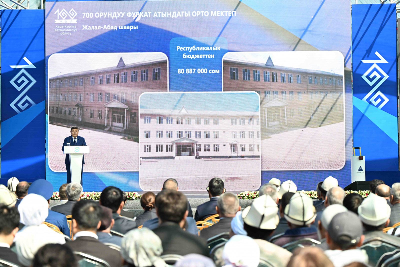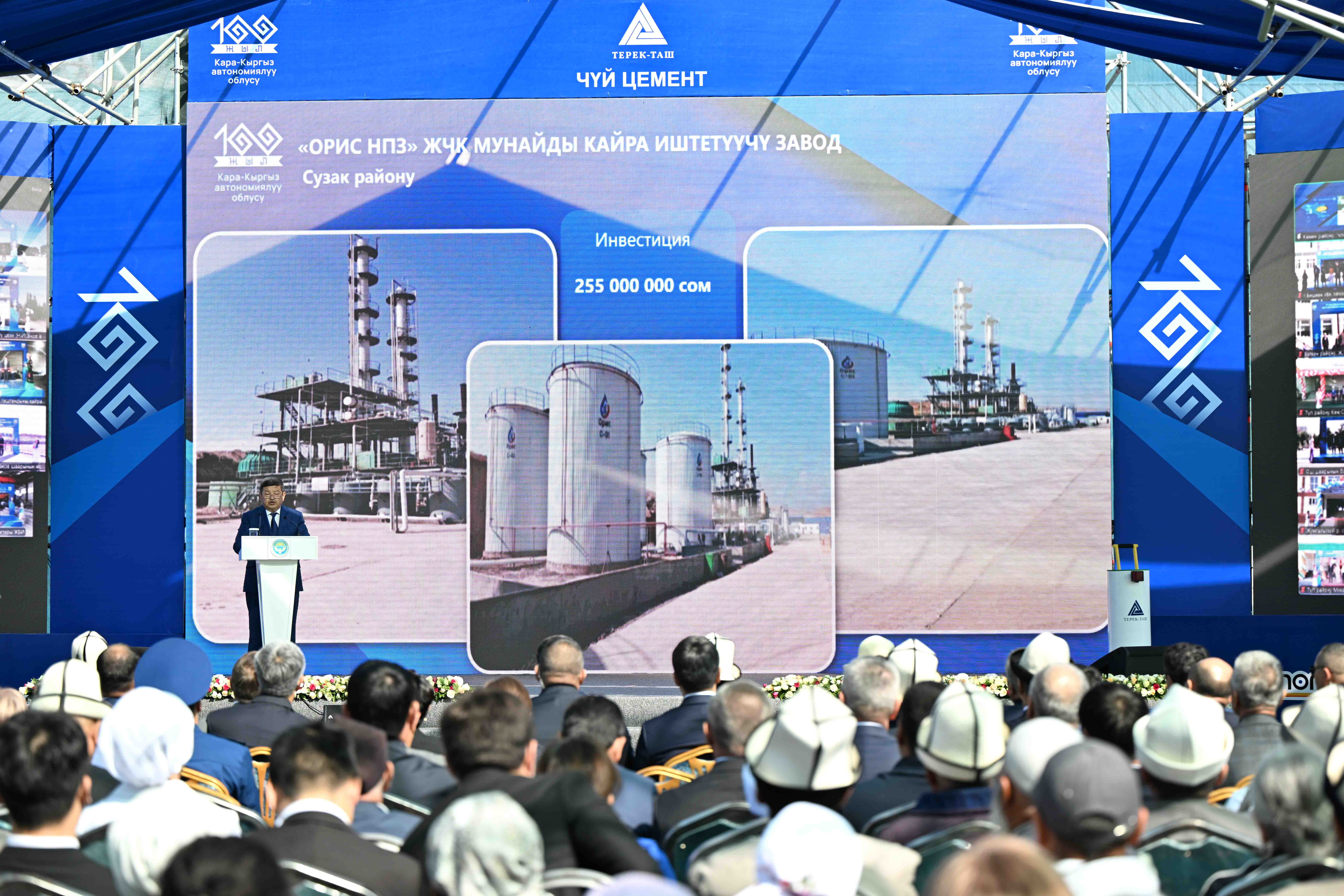 “Терек-Таш” заводунун ачылышы менен бир эле мезгилде өндүрүштүк жана социалдык маанидеги 100 объектти ачып жатабыз. Акыркы үч жыл олуттуу өзгөрүүлөрдүн жана жетишкендиктердин мезгили болду, Президенттин жана анын командасынын аракеттери реалдуу натыйжаларды көрсөтүп жатканын көрүп жатабыз – элдин турмушу жакшырап жаңы жумуш орундары түзүлүп жатат. Глобалдык кризиске карабастан, биз туруктуулукту жана өсүштү көрсөтүү менен алдыга ишенимдүү кадам шилтеп жатабыз”, – деп кошумчалады ал.