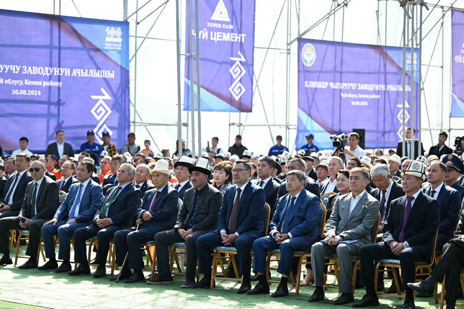Кыргыз Республикасынын Министрлер Кабинетинин Төрагасы – Кыргыз Республикасынын Президентинин Администрациясынын Жетекчиси Акылбек Жапаров Чүй облусунун Кемин районундагы клинкер чыгаруучу “Терек-Таш” заводунун ачылышына катышты.