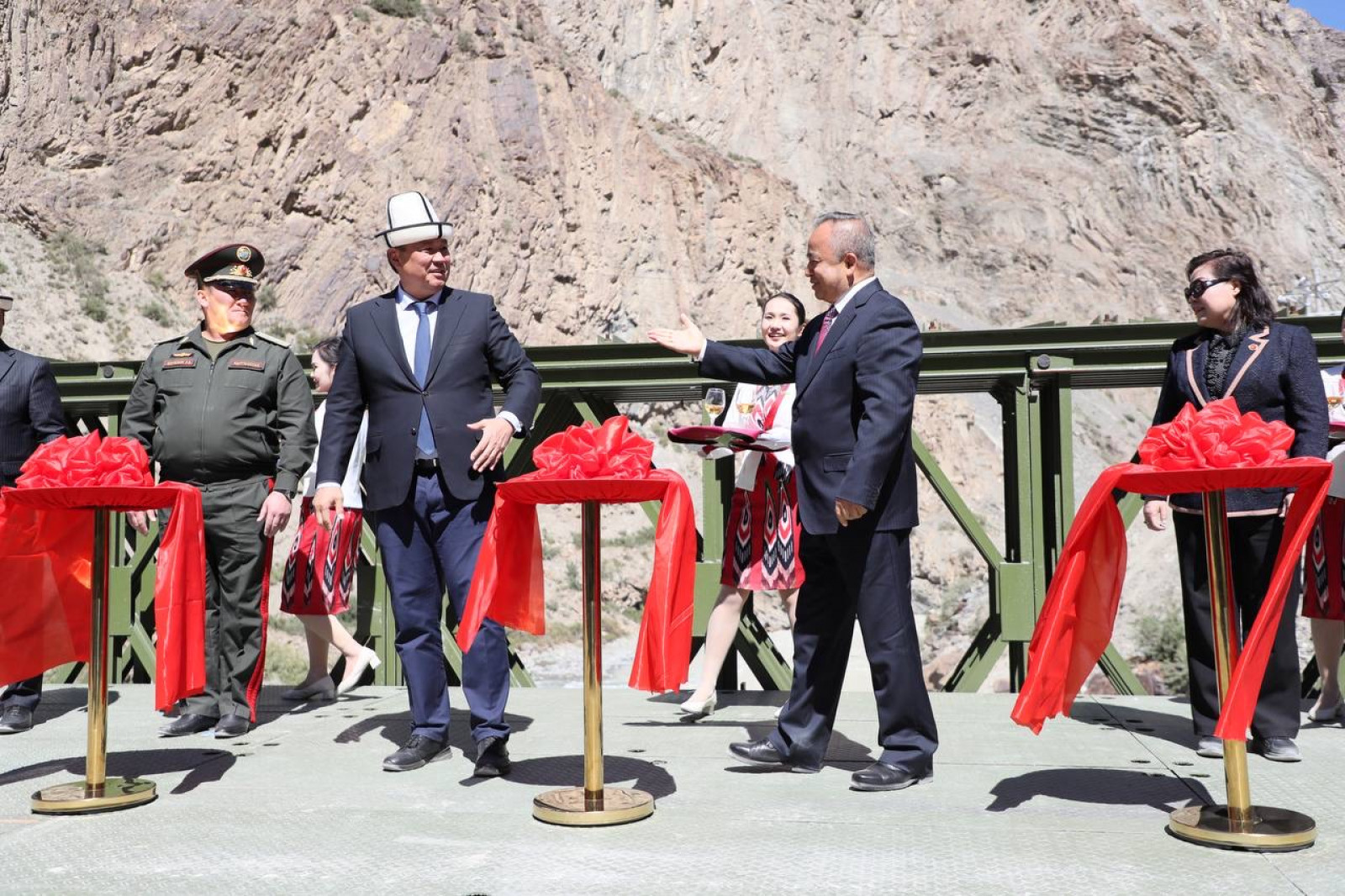 Кыргыз Республикасы менен Кытай Эл Республикасынын мамлекеттик чек арасындагы жаңы “Бедел” өткөрүү пунктунун ачылыш аземине Кыргыз Республикасынын Министрлер Кабинетинин Төрагасынын орун басары – Суу ресурстары, айыл чарба жана кайра иштетүү өнөр жай министри Бакыт Төрөбаев менен Кытай Эл Республикасынын Синьцзян-Уйгур автономдуу районунун (КЭР СУАР) Элдик Өкмөтүнүн Төрагасы Эркин Тунияз баштаган эки тараптын делегация мүчөлөрү катышты.
