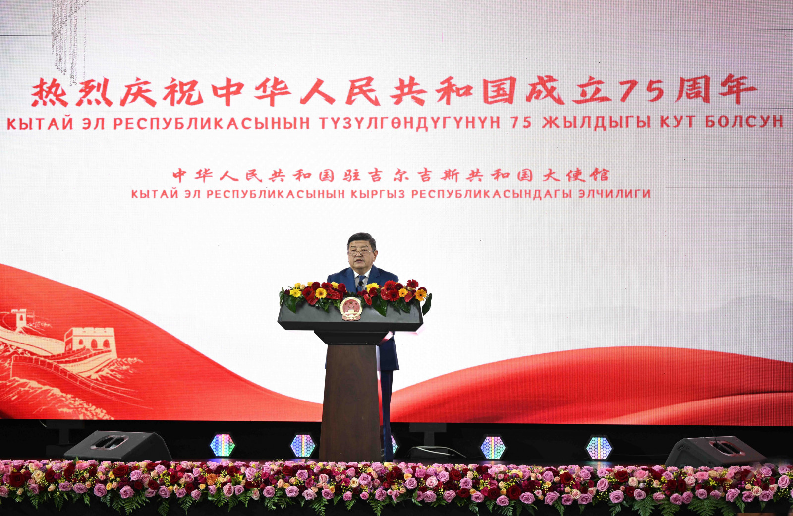 Кытай Эл Республикасынын 75 жылдыгына карата салтанаттуу кабыл алуу болуп, анда Кыргыз Республикасынын Министрлер Кабинетинин Төрагасы – Кыргыз Республикасынын Президентинин Администрациясынын Жетекчиси Акылбек Жапаров катышты.