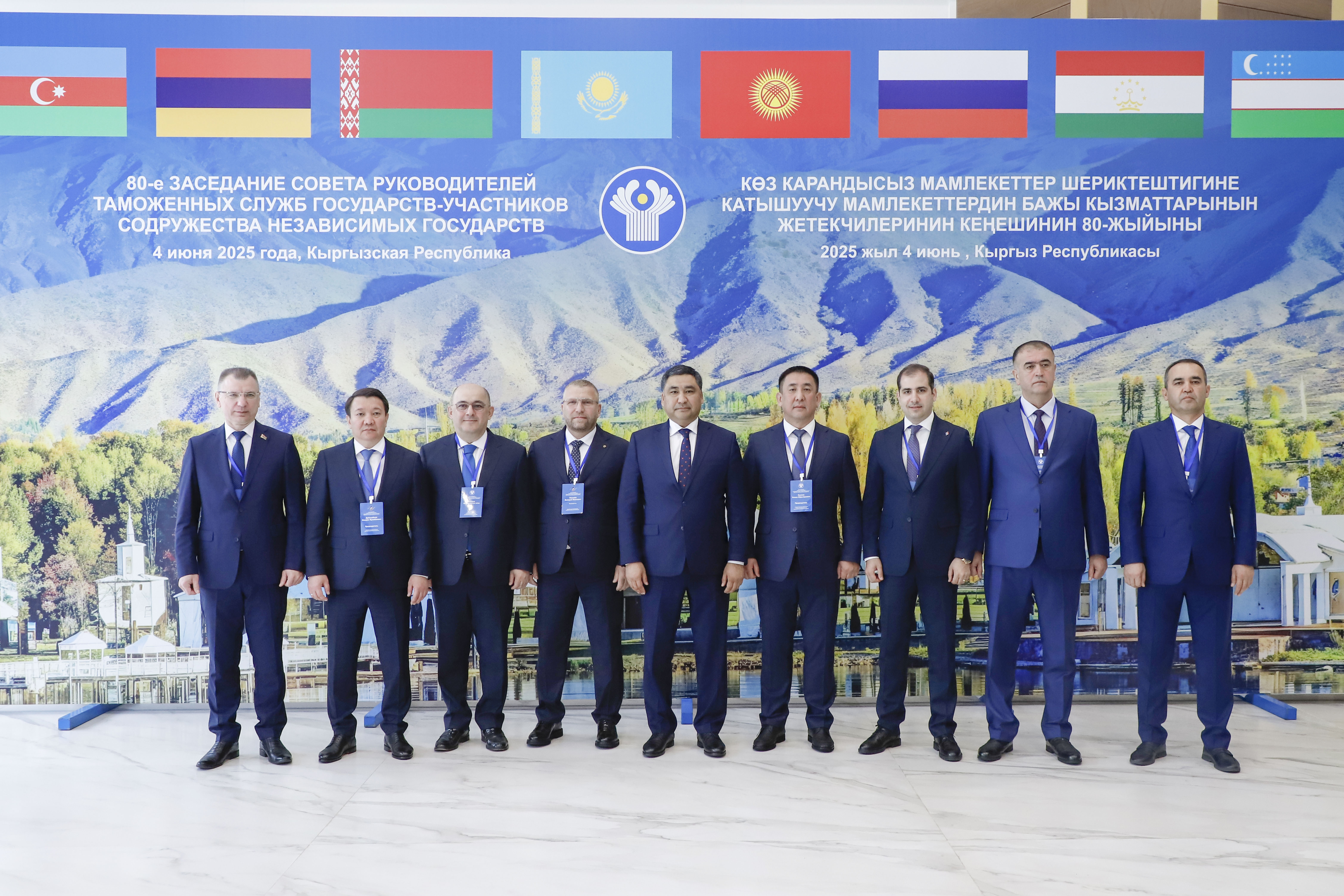 2025-жылдын 4-июнунда, Ысык-Көл облусу, Чолпон-Ата шаары, №2 мамлекеттик резиденциясы - Кыргыз Республикасынын Министрлер Кабинетинин Төрагасынын биринчи орун басары Данияр Амангелдиев Чолпон шаарында Көз карандысыз Мамлекеттер Шериктештигине мүчө мамлекеттердин Бажы кызматтарынын жетекчилеринин Кеңешинин 80-жыйынына катышты.