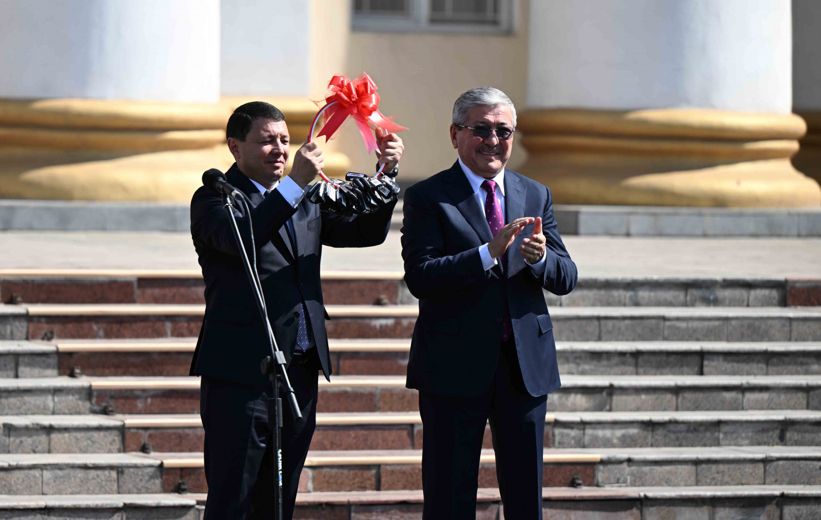 Бишкек шаары, Т. Усубалиев атындагы аянт, 2025-жылдын 18-июлу – Кыргыз Республикасынын Министрлер Кабинетинин Төрагасы – Кыргыз Республикасынын Президентинин Администрациясынын Жетекчиси Адылбек Касымалиев Кыргыз Республикасынын Маданият, маалымат жана жаштар саясаты министрлигине жаңы автоунаалардын ачкычын тапшырды.