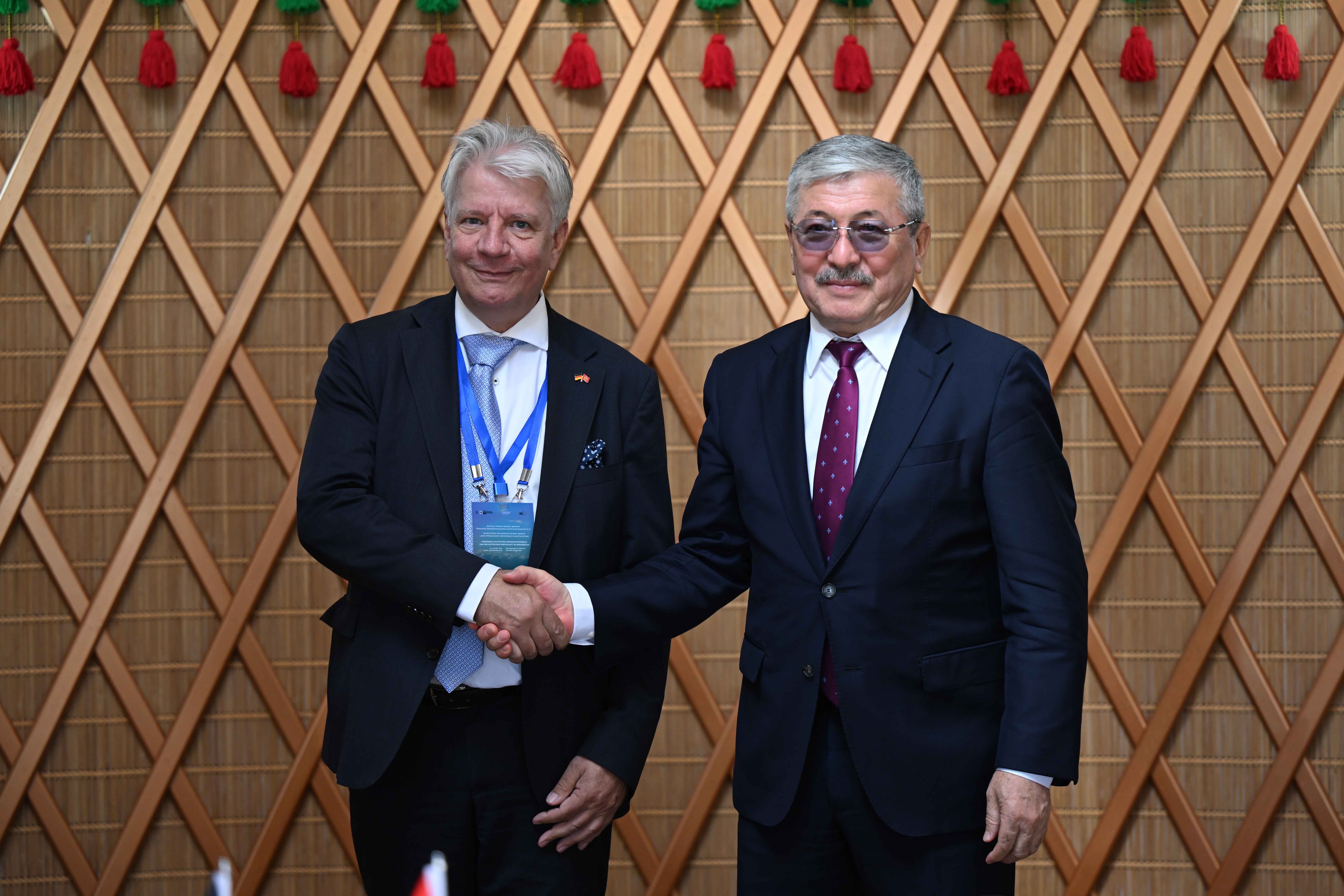 Чолпон-Ата, “Рух Ордо” маданий борбору, 2025-жылдын 26-августу – Кыргыз Республикасынын Министрлер Кабинетинин Төрагасы – Кыргыз Республикасынын Президентинин Администрациясынын Жетекчиси Адылбек Касымалиев “Rhenus Assets & Services GmbH & Co. KG” компаниясынын аткаруучу директору, “Rhenus SE” компаниянын башкармалыгынын ыйгарым укуктуу өкүлү Генрих Керстгенс менен жолукту. Жолугушуу “Кыргызстандагы Германия экономикасынын күнү” кыргыз-герман бизнес форумунун жана кыргыз-герман ишкерлер кеңешинин IV отурумунун алкагында өттү.