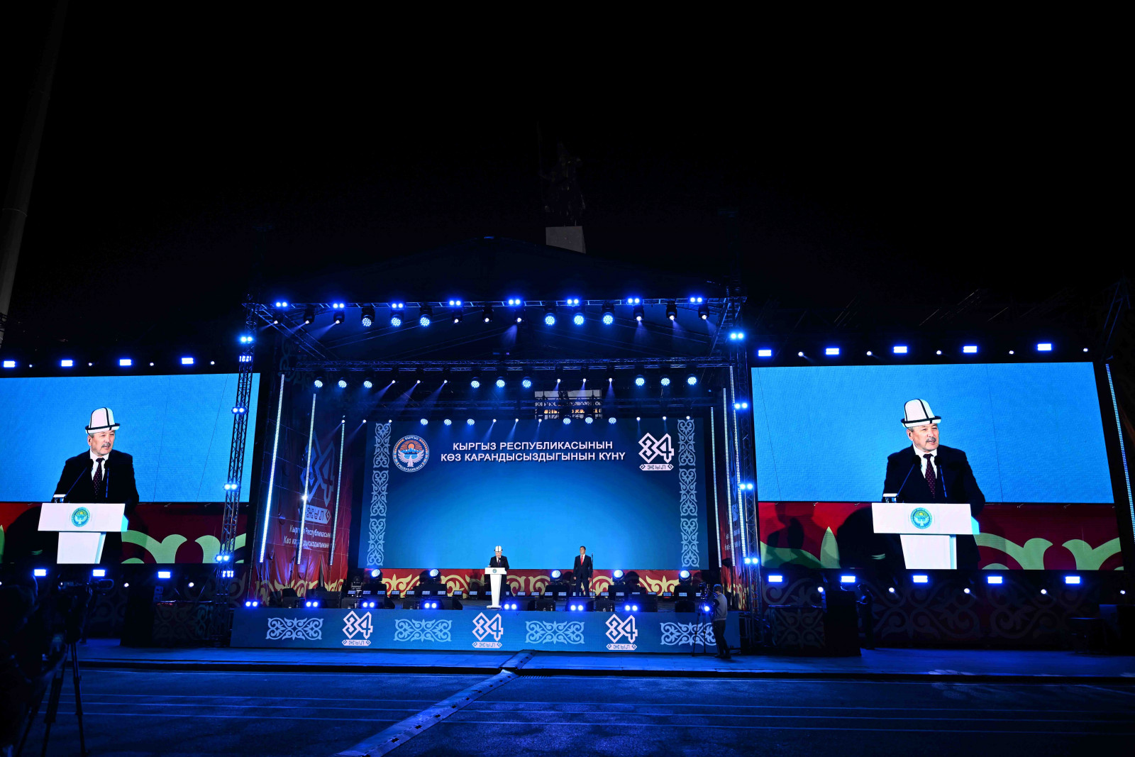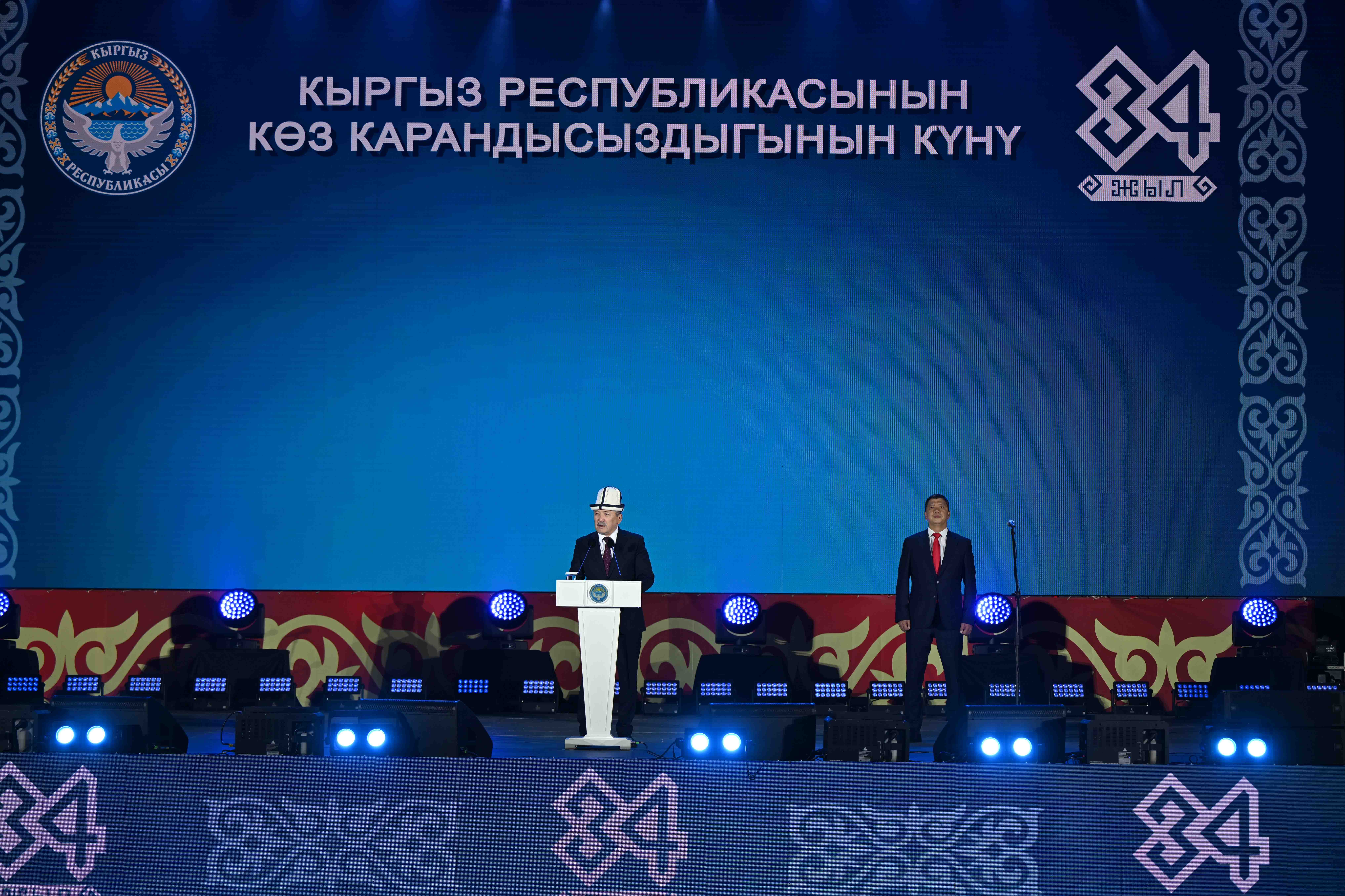 Кыргыз Республикасынын Министрлер Кабинетинин Төрагасы — Президенттин Администрациясынын Жетекчиси Адылбек Касымалиев Бишкек шаарынын Ала-Тоо аянтында, Кыргыз Республикасынын эгемендүүлүгүнүн 34 жылдыгына арналган салтанатка катышып, куттуктоо сөзүн сүйлөдү.