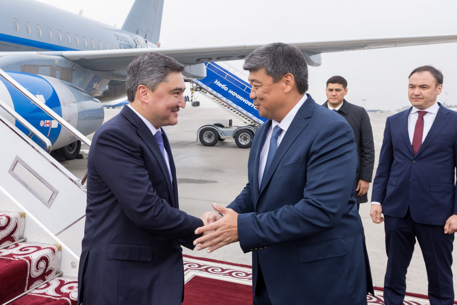 “Манас” эл аралык аэропорту, 2025-жыл, 18-сентябрь — Казакстан Республикасынын Премьер-министри Олжас Бектенов Түрк мамлекеттер уюмуна мүчө мамлекеттердин Өкмөт башчыларынын жана вице-президентинин жолугушуусуна катышуу үчүн Кыргыз Республикасына келди.