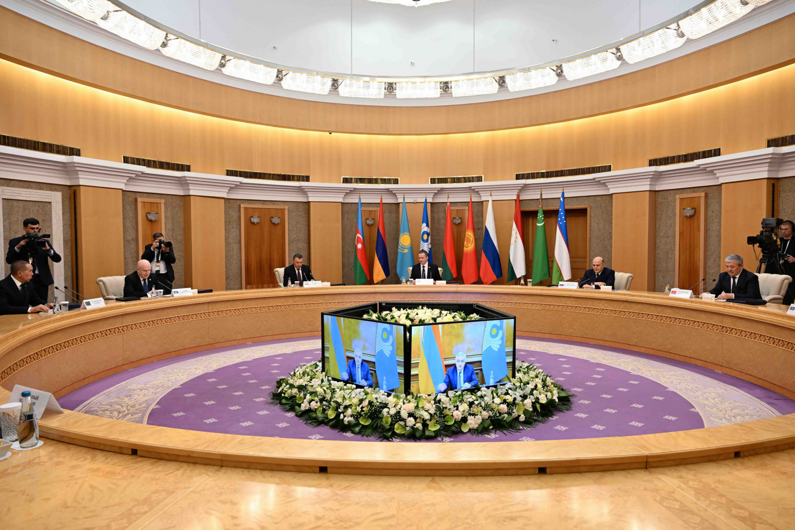 Жолугушуунун алдында делегация башчылары үчүн сүрөткө түшүү аземи болуп өттү.