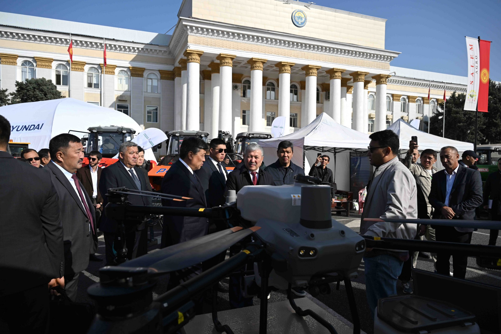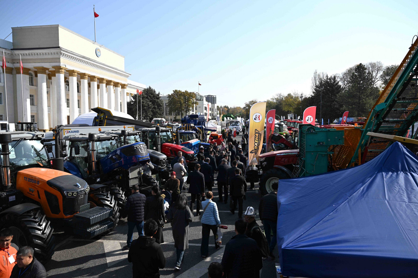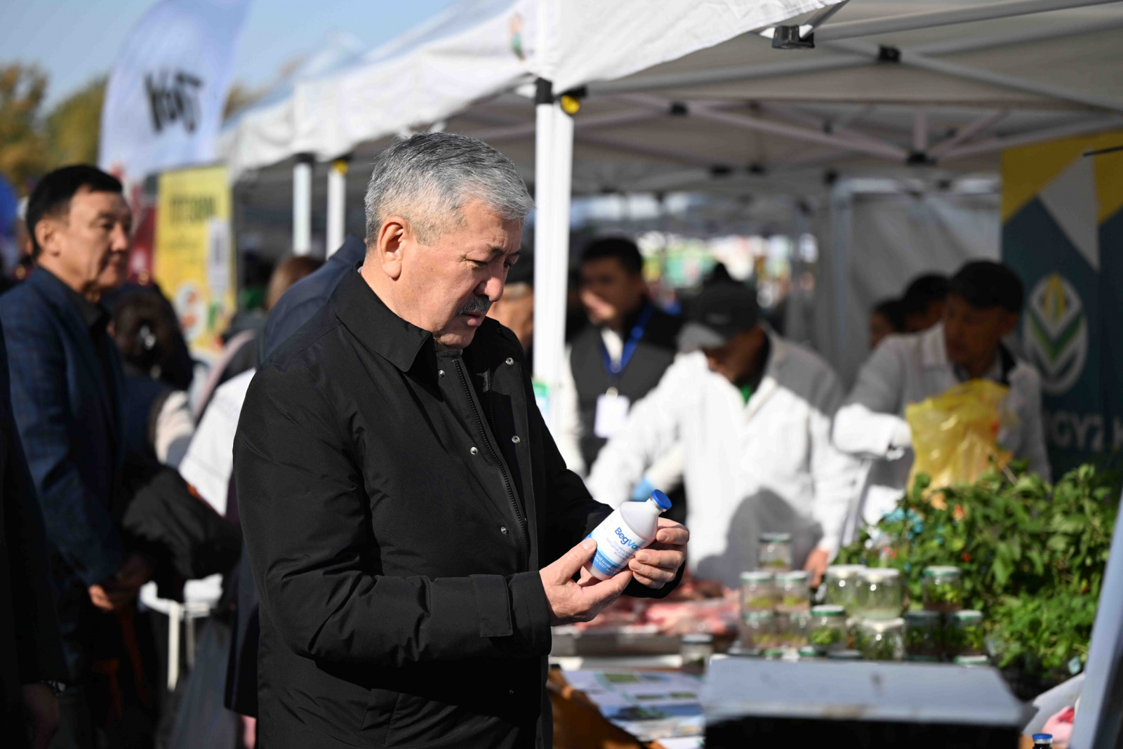 Бишкек, 2025-жылдын 19-октябры — Кыргыз Республикасынын Министрлер Кабинетинин Төрагасы – Кыргыз Республикасынын Президентинин Администрациясынын Жетекчиси Адылбек Касымалиев “Алтын күз” айыл чарба азыктарынын жарманкесине, “АгроТехЭкспо–2025” агроөнөр жай көргөзмөсүнө жана Кыргызстандын агроөнөр жай комплексинин кызматкерлеринин күнүнө карата өткөрүлгөн салтанаттуу иш-чараларга катышты.
