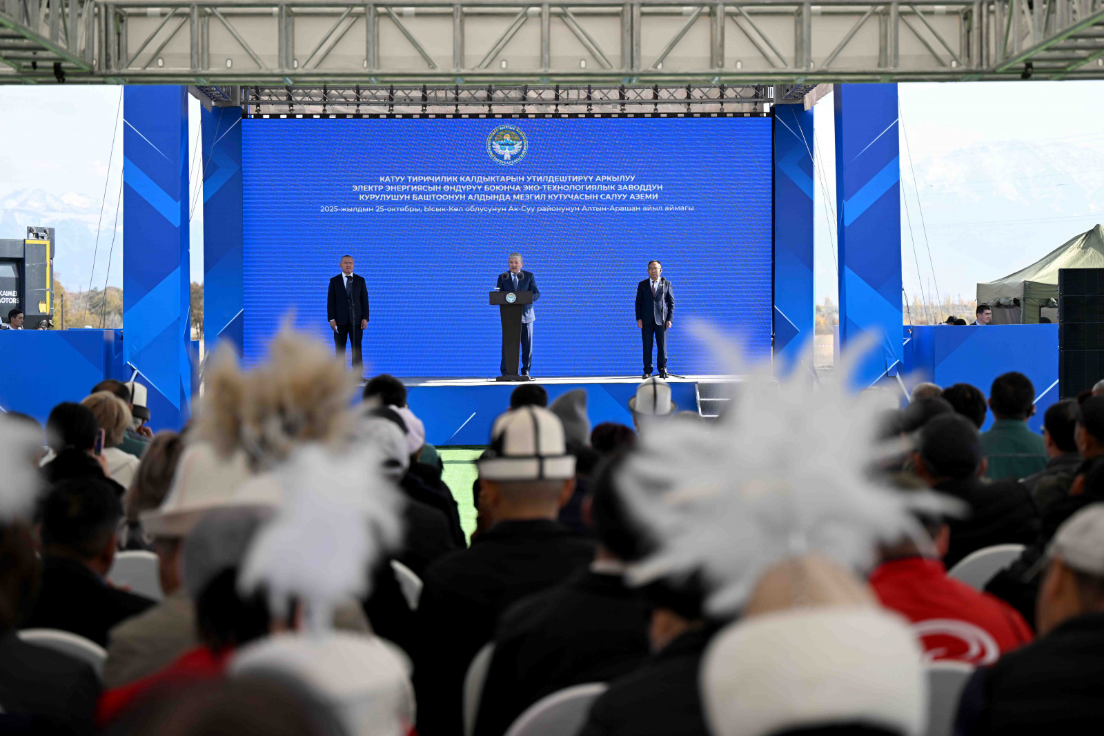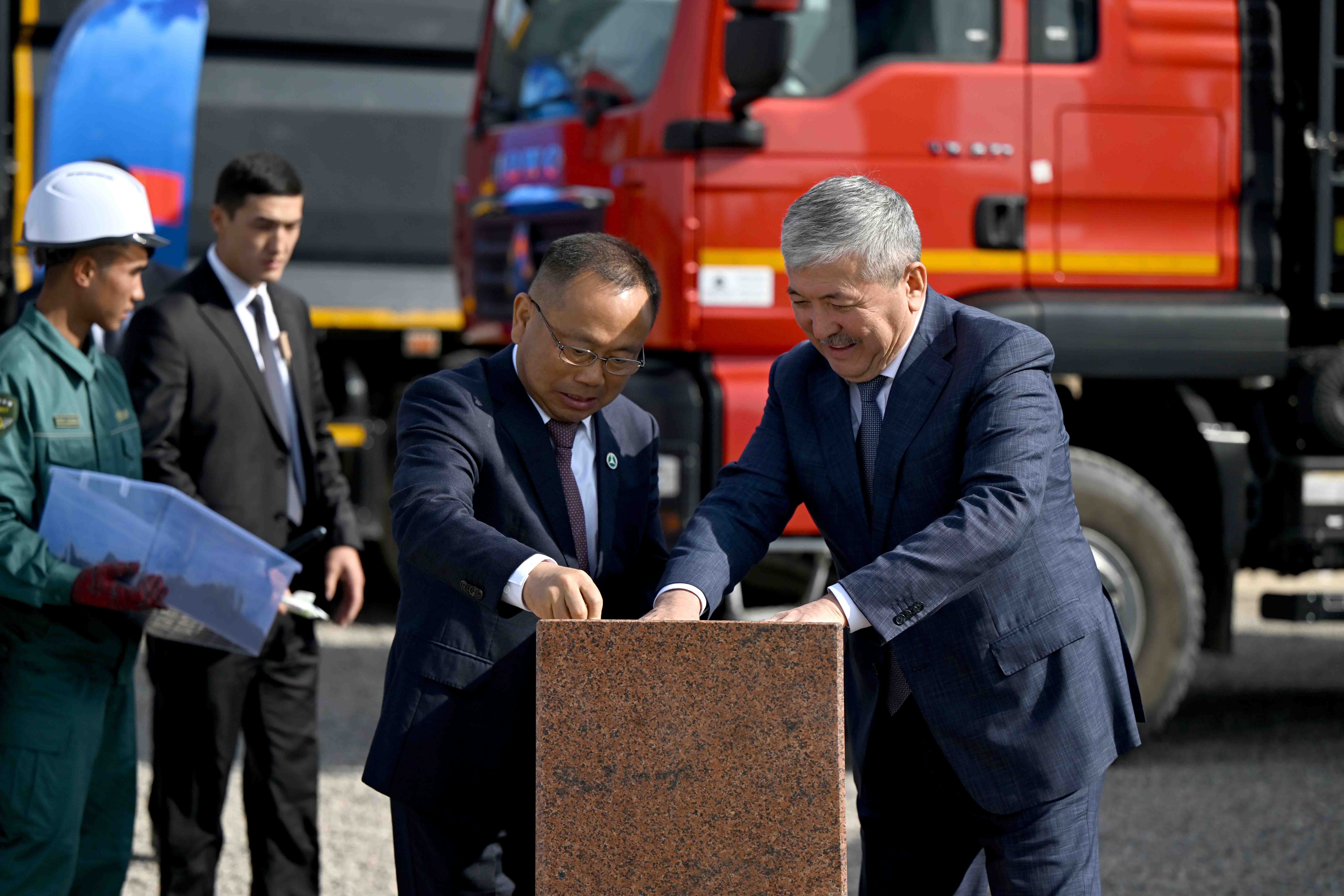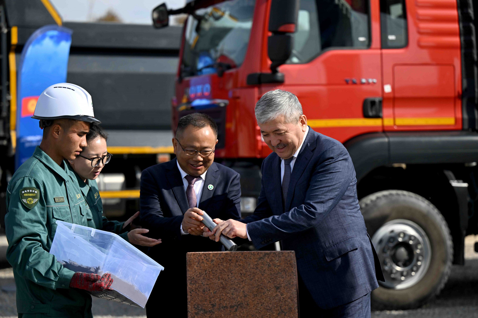 МинКаб башчысы Адылбек Касымалиев Каракол шаарынын таштанды калдыктарын технологиялык жол менен жок кылуучу заводдун курулушуна мезгил кутучасын салуу аземине катышты