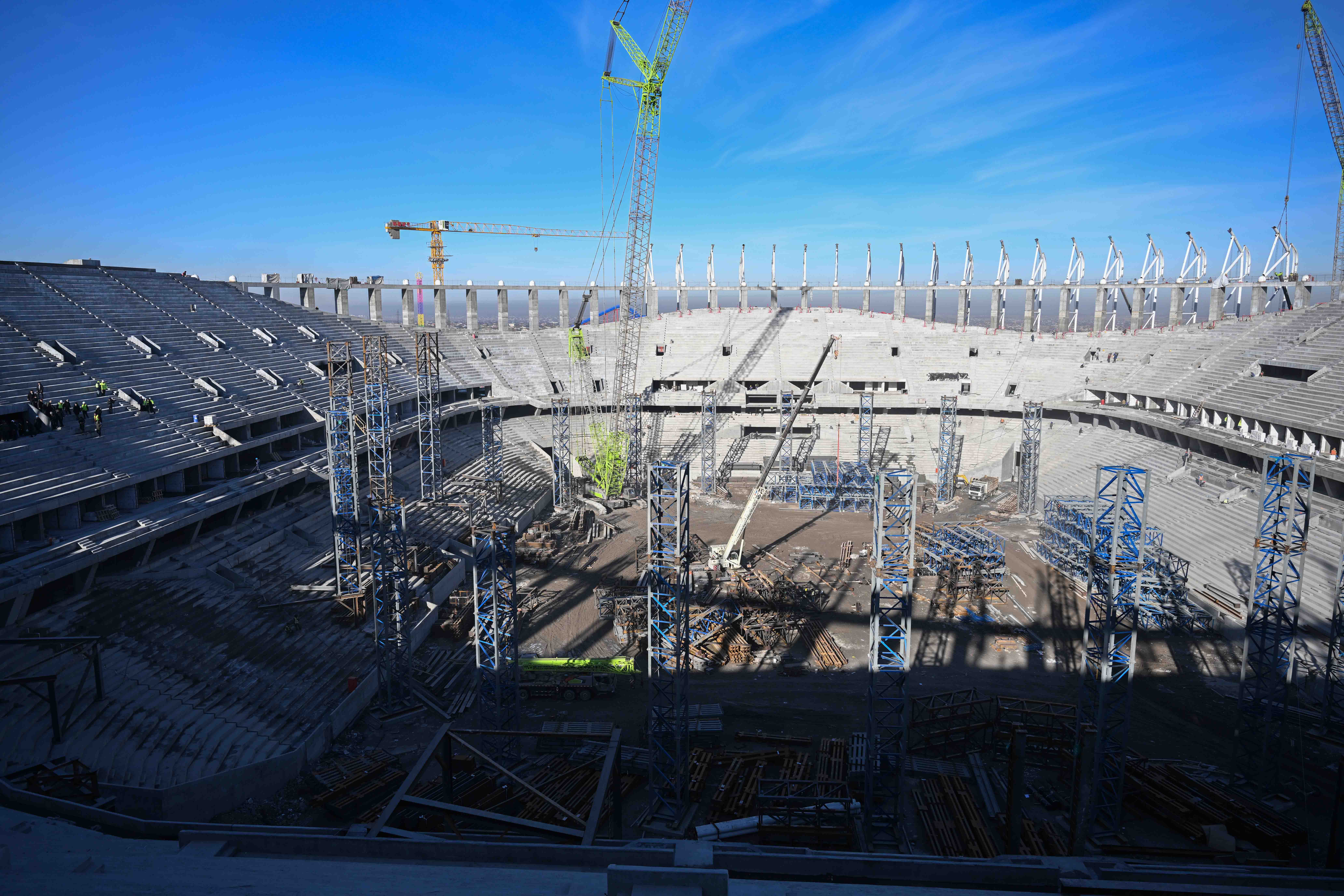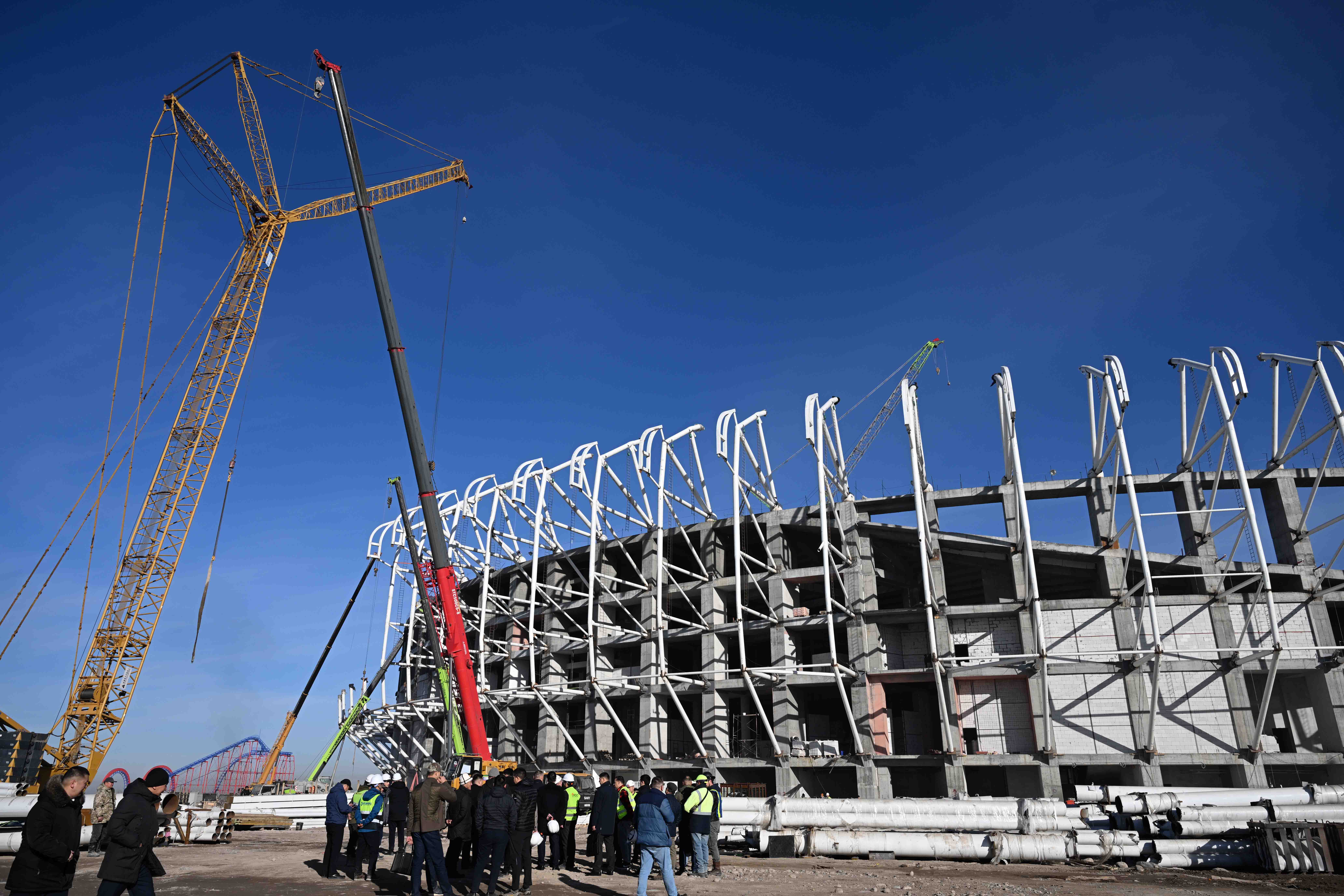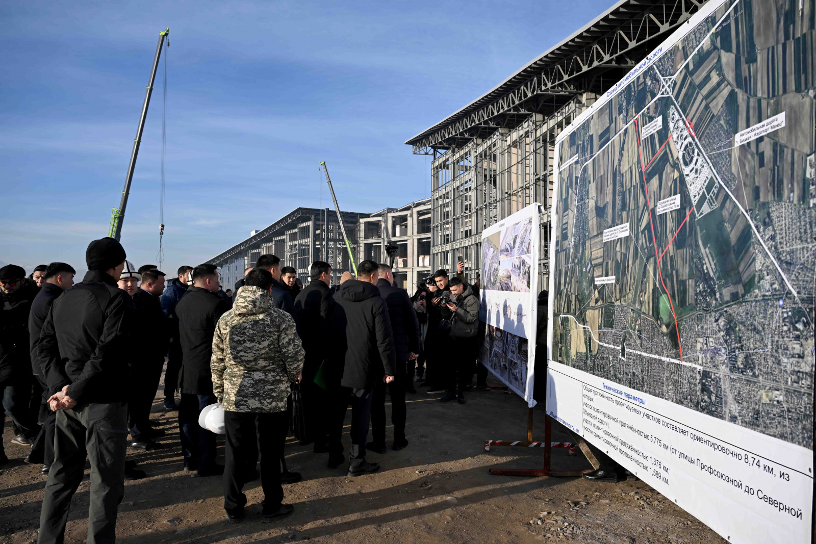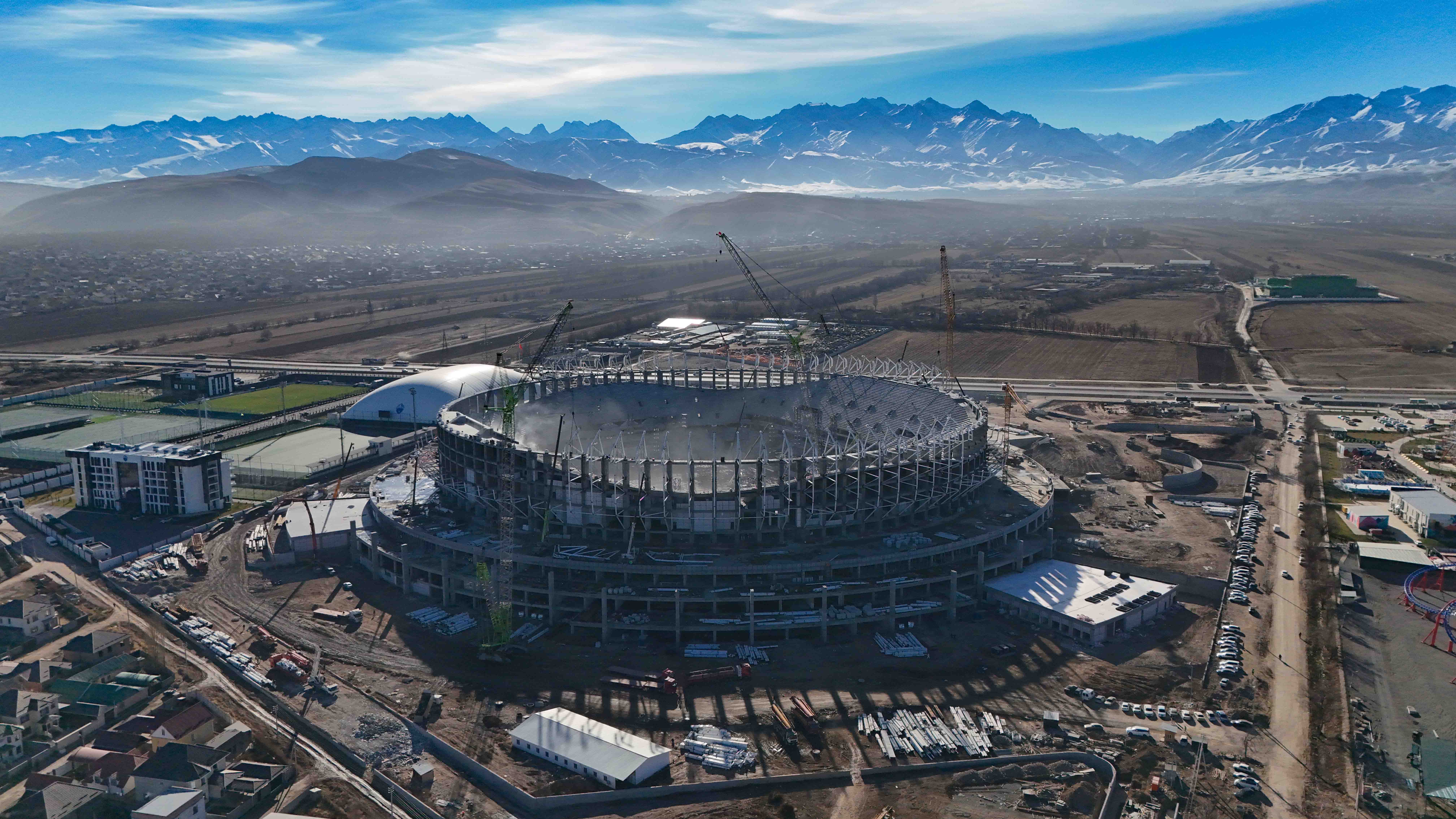 Мында, Каныбек Туманбаев курулуштун жүрүшү тууралуу кеңири маалымат берди. Жалпы 51 миң көрүүчүгө ылайыкталган спорт комплекси ФИФАнын стандарттарын сактоо менен курулууда. Стадион өлкөдөгү эң ири спорттук объект болуп, Кыргызстанда дүйнөлүк деңгээлдеги футбол беттештерин жана маданий иш-чараларды өткөрүүгө шарт түзүлөт.