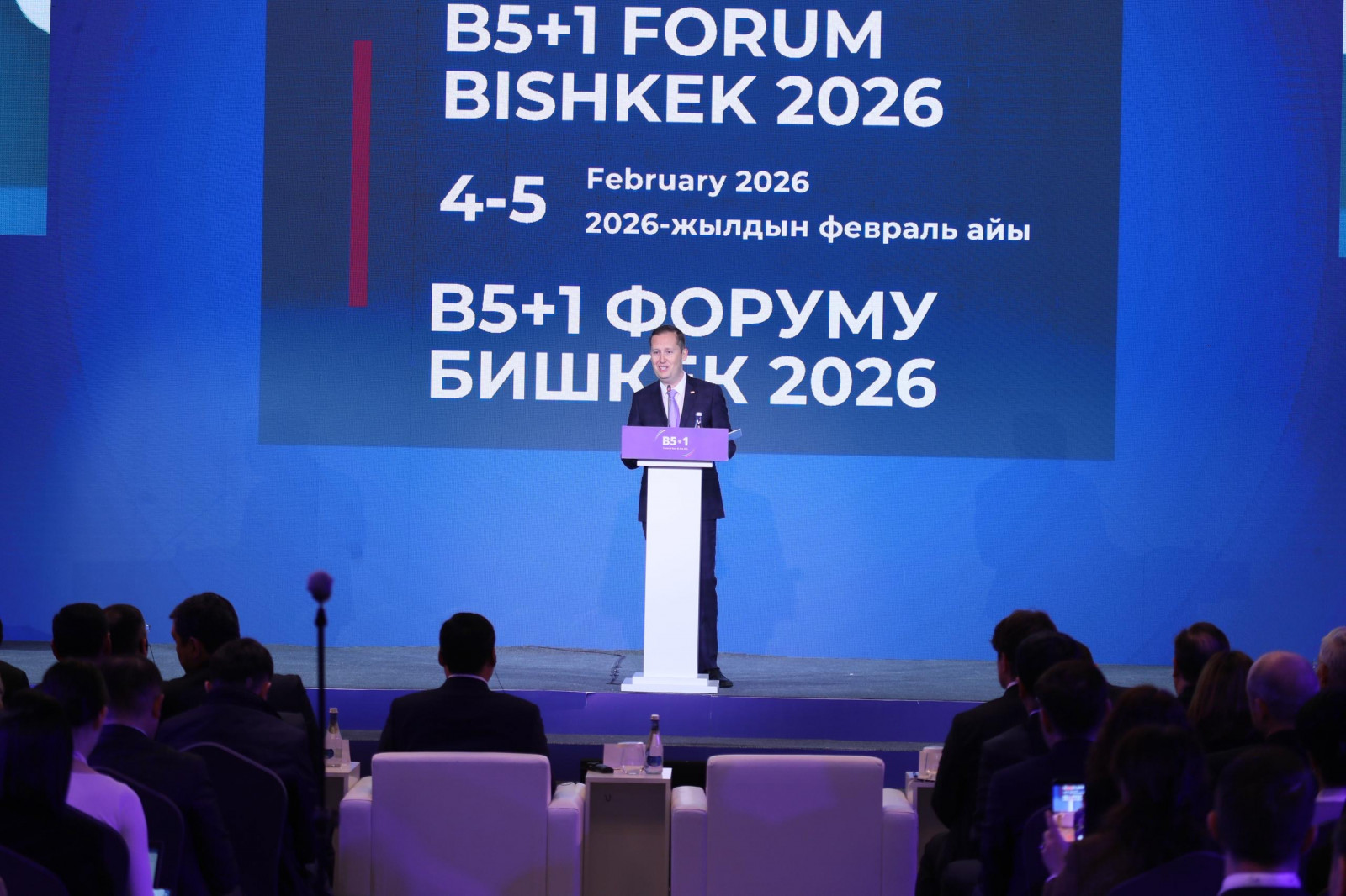 Бишкек, 2026-жылдын 4-февралы – Кыргыз Республикасынын Министрлер Кабинетинин Төрагасынын биринчи орун басары Данияр Амангелдиев Бишкекте өткөн В5+1 бизнес форумунда сөз сүйлөп, анда Борбор Азияны бирдиктүү, келечектүү экономикалык аймак катары белгилеп, эл аралык бизнести кызматташууну жана инвестицияны кеңейтүүгө чакырды.