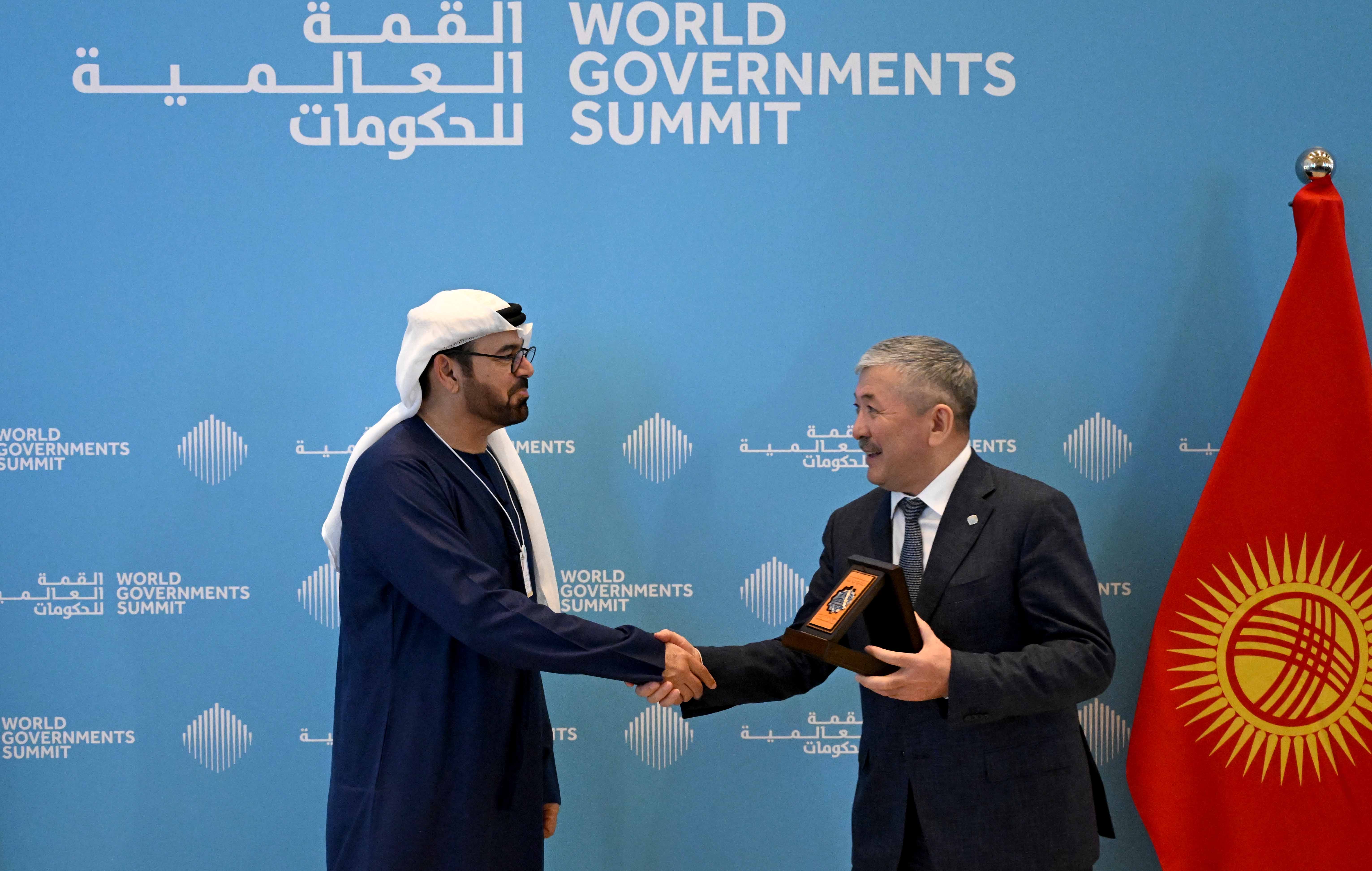 Саммиттин алкагында Адылбек Касымалиев Кыргыз Республикасынын Президенти Садыр Жапаровдун атынан БАЭнин Министрлер Кабинетинин иштер боюнча министри, Дүйнөлүк өкмөттөр саммити уюмунун Төргасы Мохаммед Абдулла Аль Гергавиге Кыргыз Республикасы менен Бириккен Араб Эмираттарынын ортосундагы достукту жана кызматташтыкты чыңдоого кошкон зор салымы жана Кыргыз Республикасында “Өкмөттүк акселераторлор” программасын ийгиликтүү ишке ашыргандыгы үчүн “Достук” орденин тапшырды.