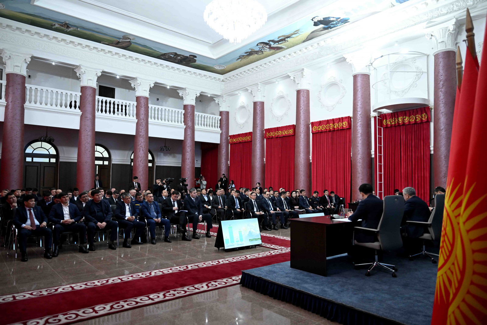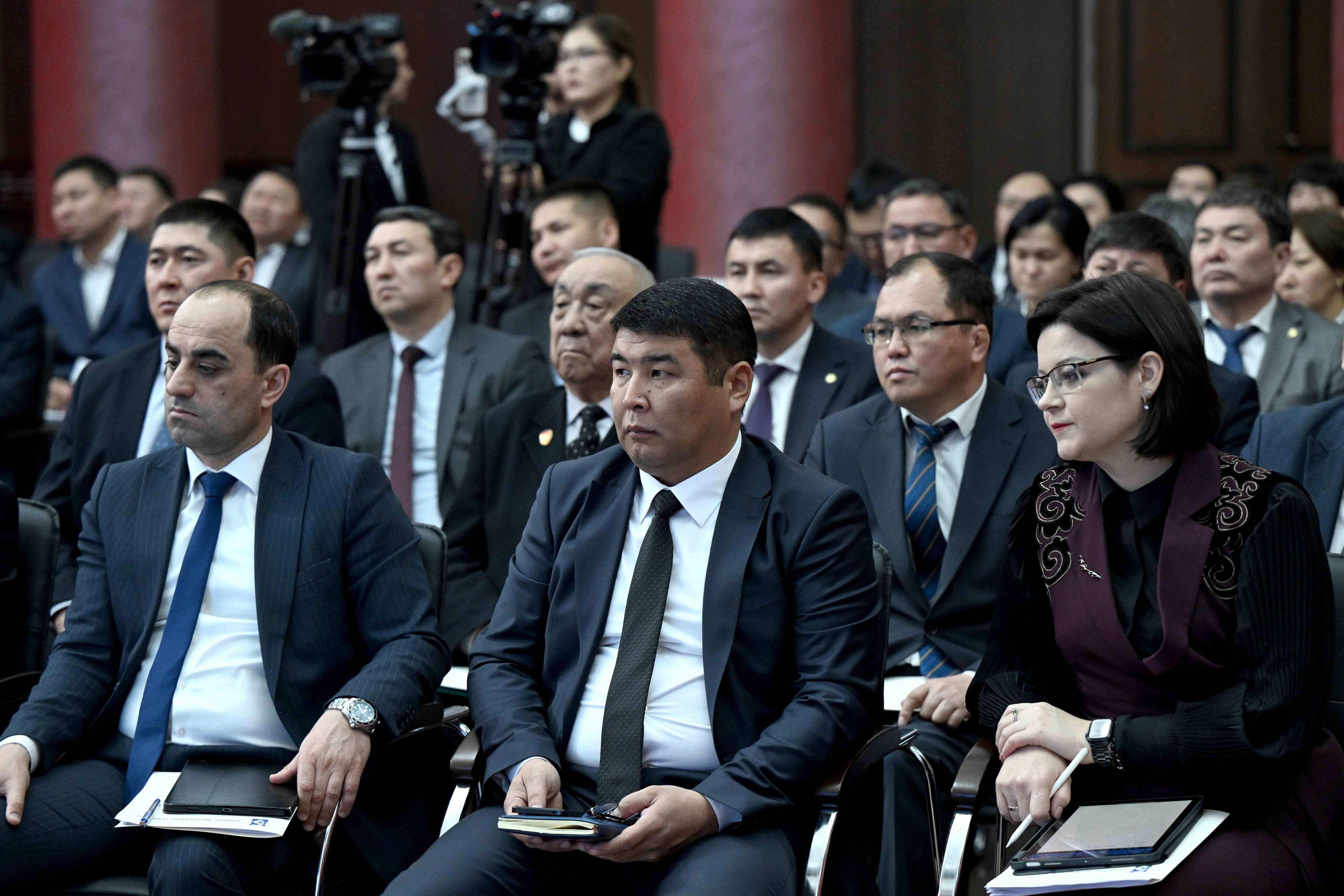 Бишкек, 12-февраль – Кыргыз Республикасынын Министрлер Кабинетинин Төрагасы Президенттин Администрациясынын Жетекчиси Адылбек Касымалиев Бишкек шаарынын мэриясынын 2025-жылдагы муниципалитеттин ишмердүүлүгүнүн жыйынтыгы жана 2026-жылга пландары боюнча коллегиясынын жыйынына катышты.