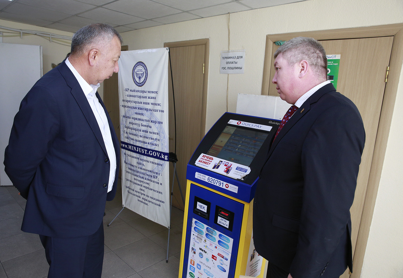 Кыргыз Республикасынын биринчи вице-премьер-министри Кубатбек Боронов Кыргыз Республикасынын Юстиция министрлигинин Бишкек шаарынын аймагында пилоттук режимде иштеп жаткан "Электрондук нотариат" маалыматтык тутумунун иши менен таанышты.