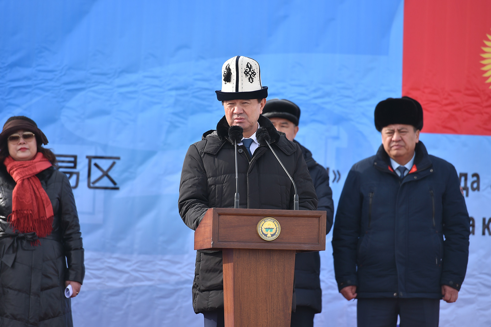 Кыргыз Республикасынын Премьер-министри Мухаммедкалый Абылгазиев Нарын облусуна жасаган иш сапарынын алкагында «Торугарт» көзөмөл-өткөрүү пунктундагы инспектордук-текшерүү комплексин ишке киргизүү аземине, Ат-Башы районунда курула турган индустриялык-соода-логистикалык борборунун пайдубалына капсула салуу салтанатына катышты.