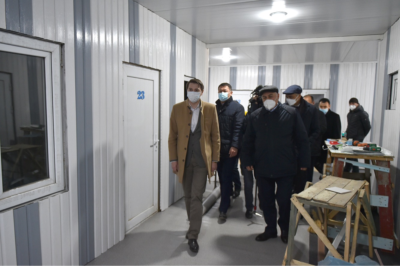 Кыргыз Республикасынын Премьер-министринин милдетин аткаруучу, биринчи вице-премьер-министр Артем Новиков Баткен облусуна жумушчу сапарынын жүрүшүндө Кадамжай районунун Кадамжай шаарындагы жугуштуу оорулар оруканасынын курулушунун жүрүшү менен таанышты.