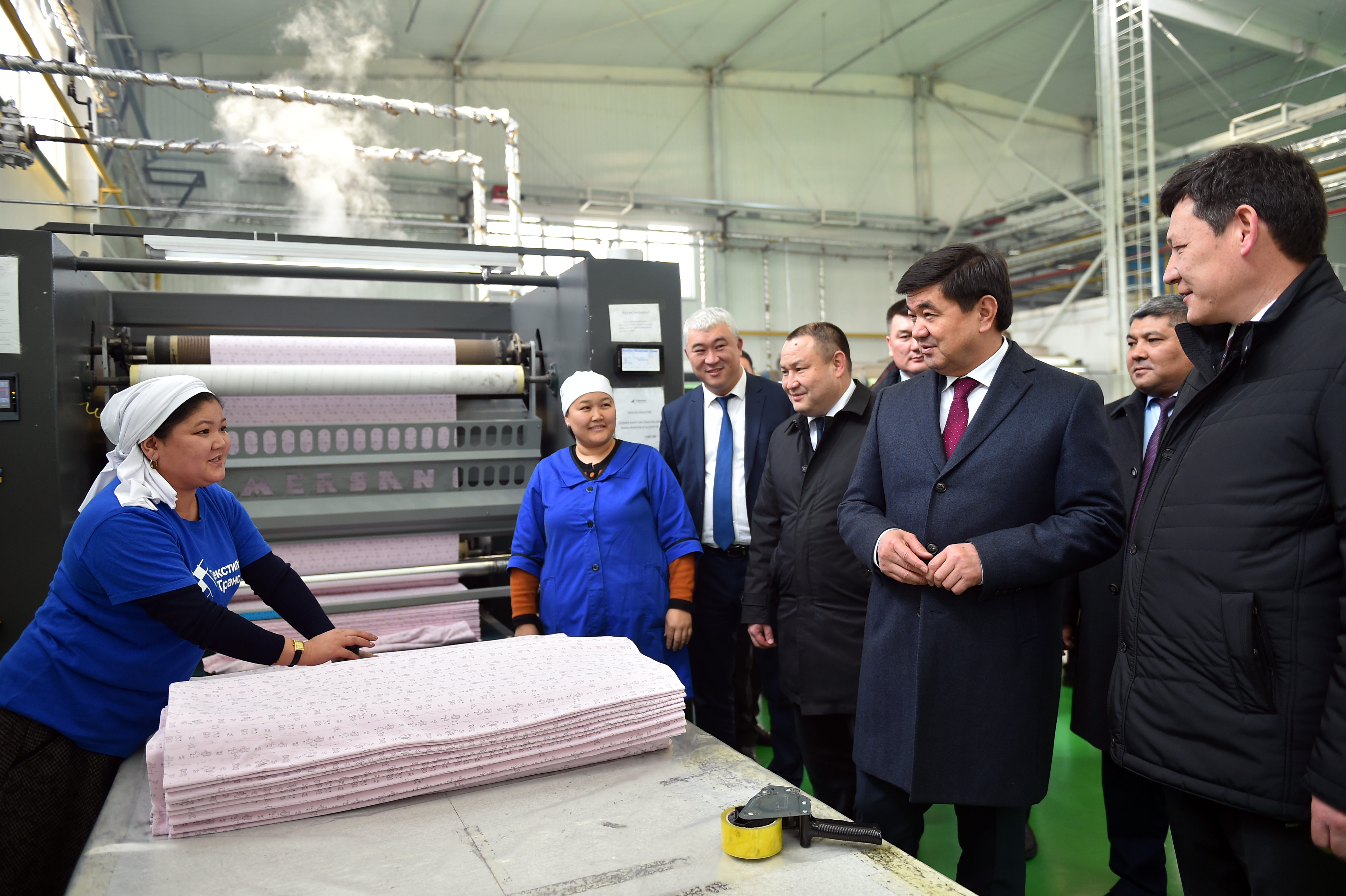 Кыргыз Республикасынын Премьер-министри Мухаммедкалый Аблыгазиев Чүй облусуна жасаган иш сапарынын жүрүшүндө «Текстильтранс» компаниясынын иши менен таанышты.
