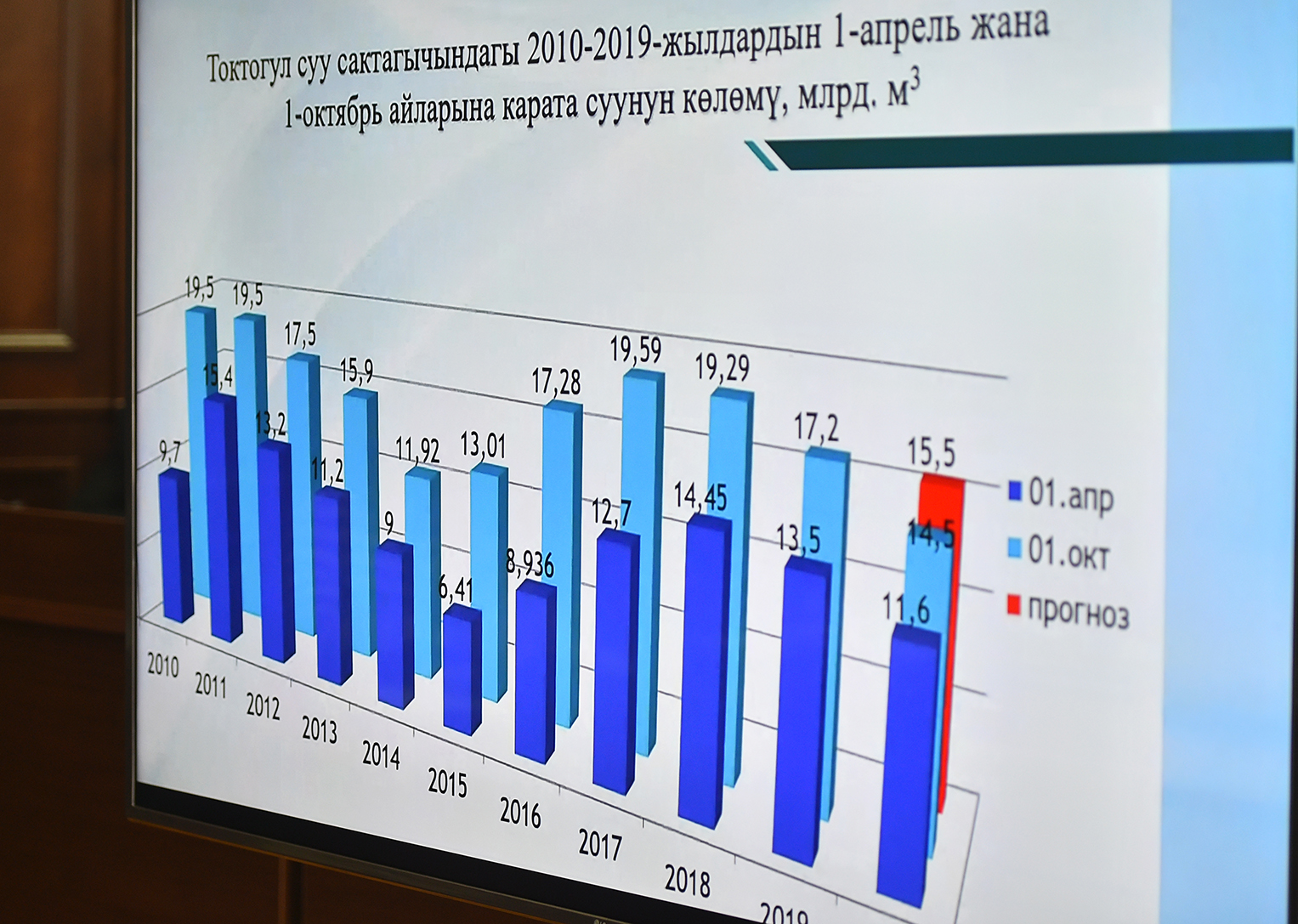 «Былтыркы токтом жакшы аткарылды. Мезгил эч кандай аша чабуусуз өттү. Аба ырайы жылуу болгондуктан авариялык өчүүлөр аз болду жана Токтогул суу сактагычындагы суунун болжолдонгон көлөмүнүн 4% үнөмдөдүк. Адистердин божомолунда быйылкы жылы суу аз болот. Токтогул суу сактагычындагы суунун көлөмү күзүндө 15 миллиард 600 миллион метр кубдан ашпайт. Бул импорттук да, жергиликтүү да көмүрдү, ошондой эле мазут жана газды камдап алышыбыз керектигин айтып турат. Бирок баа маселесин чечкенибизди айтып коеюн, электр энергиясынын наркы көтөрүлбөйт жана мурунку деңгээлинде калат», – деп баса белгиледи Мухаммедкалый Абылгазиев.