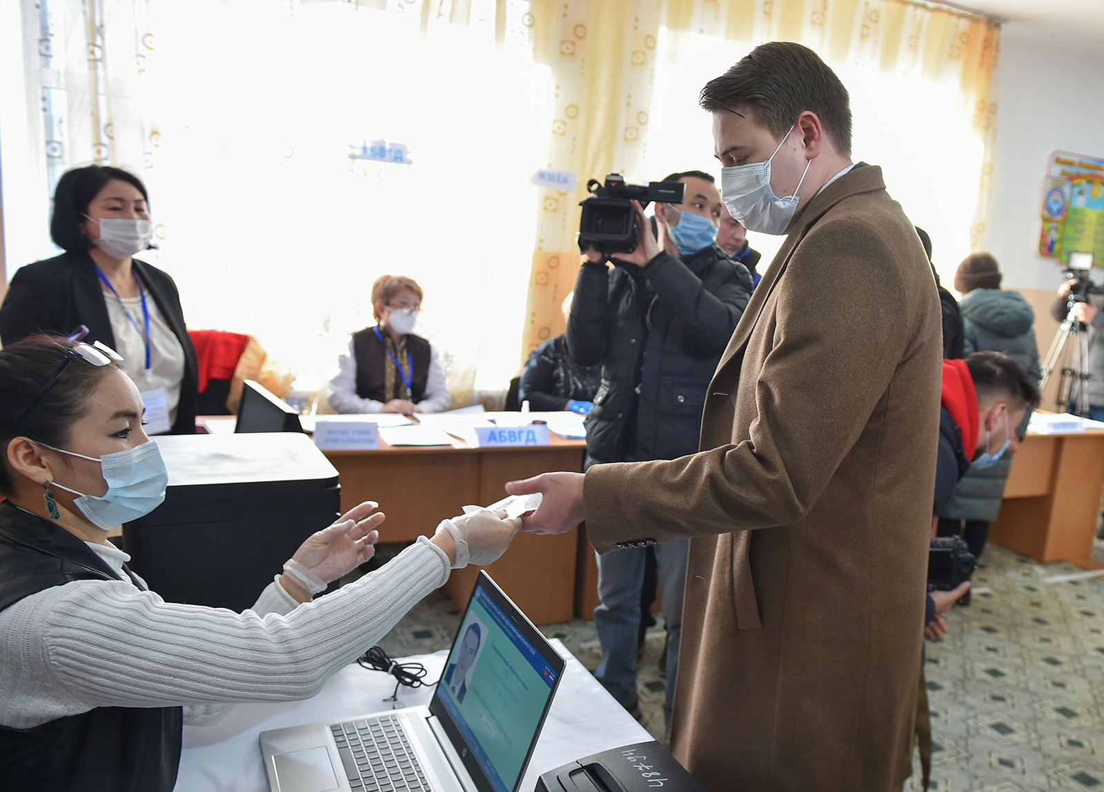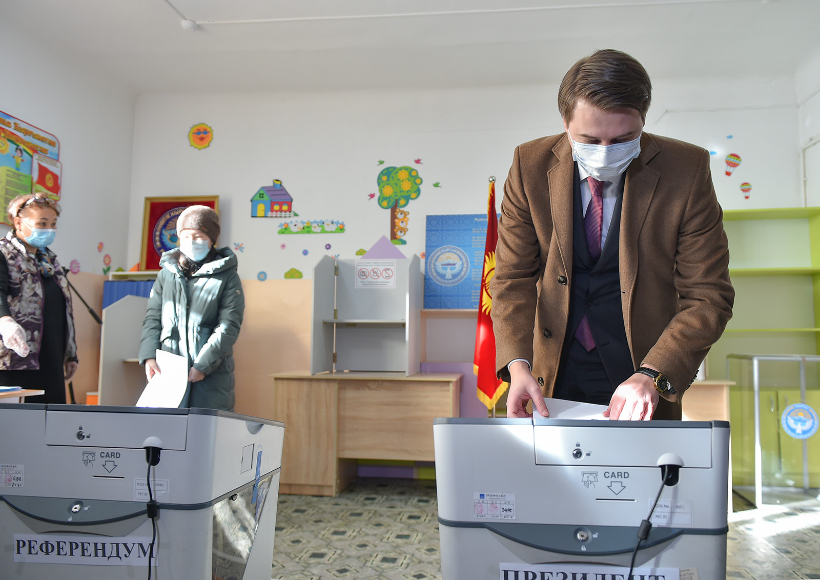 Артем Новиков Бишкек шаарындагы № 122 Атайы мектепке чейинки билим берүү мекемесинин имаратындагы № 1102 шайлоо участогунда добуш берди.
