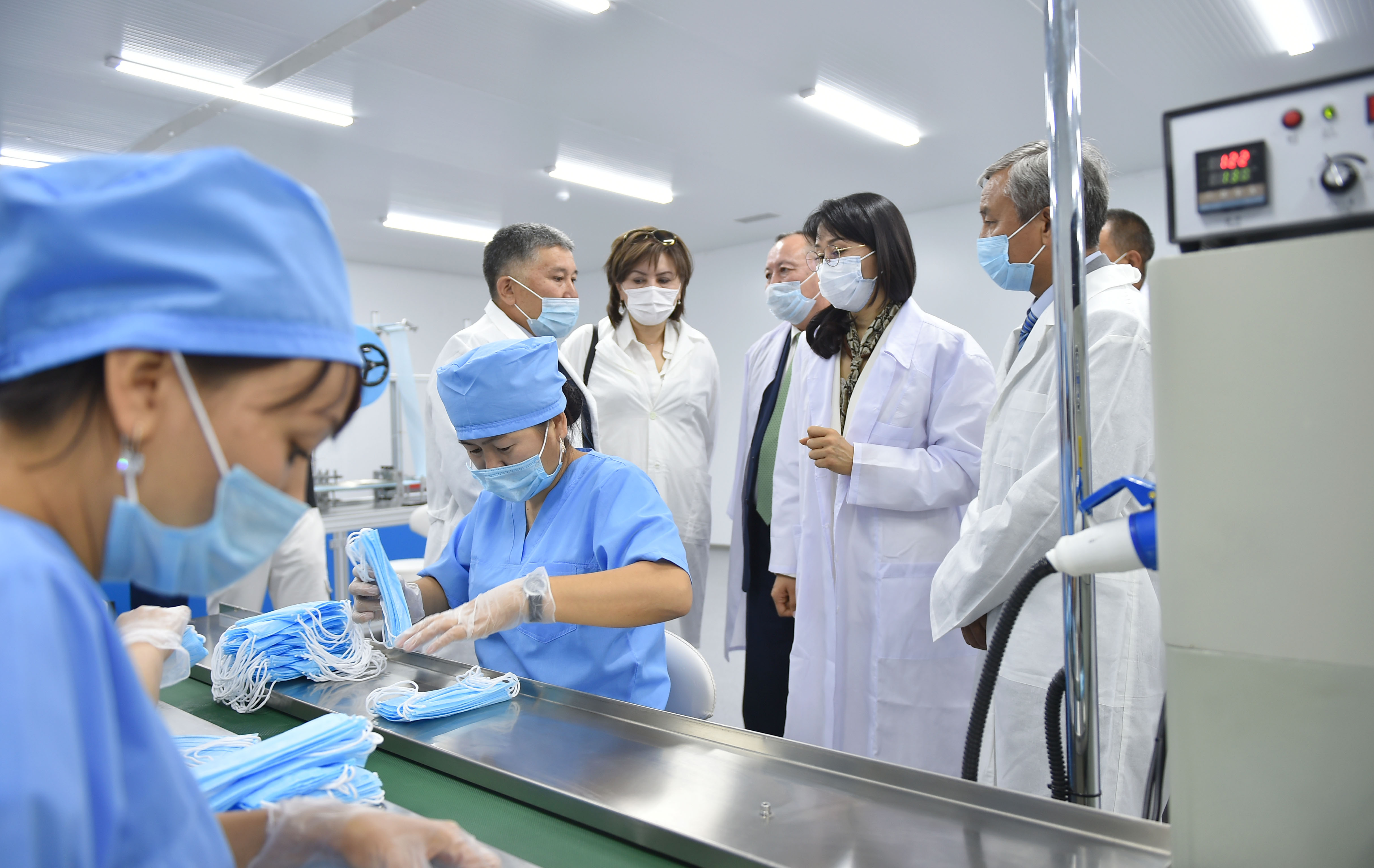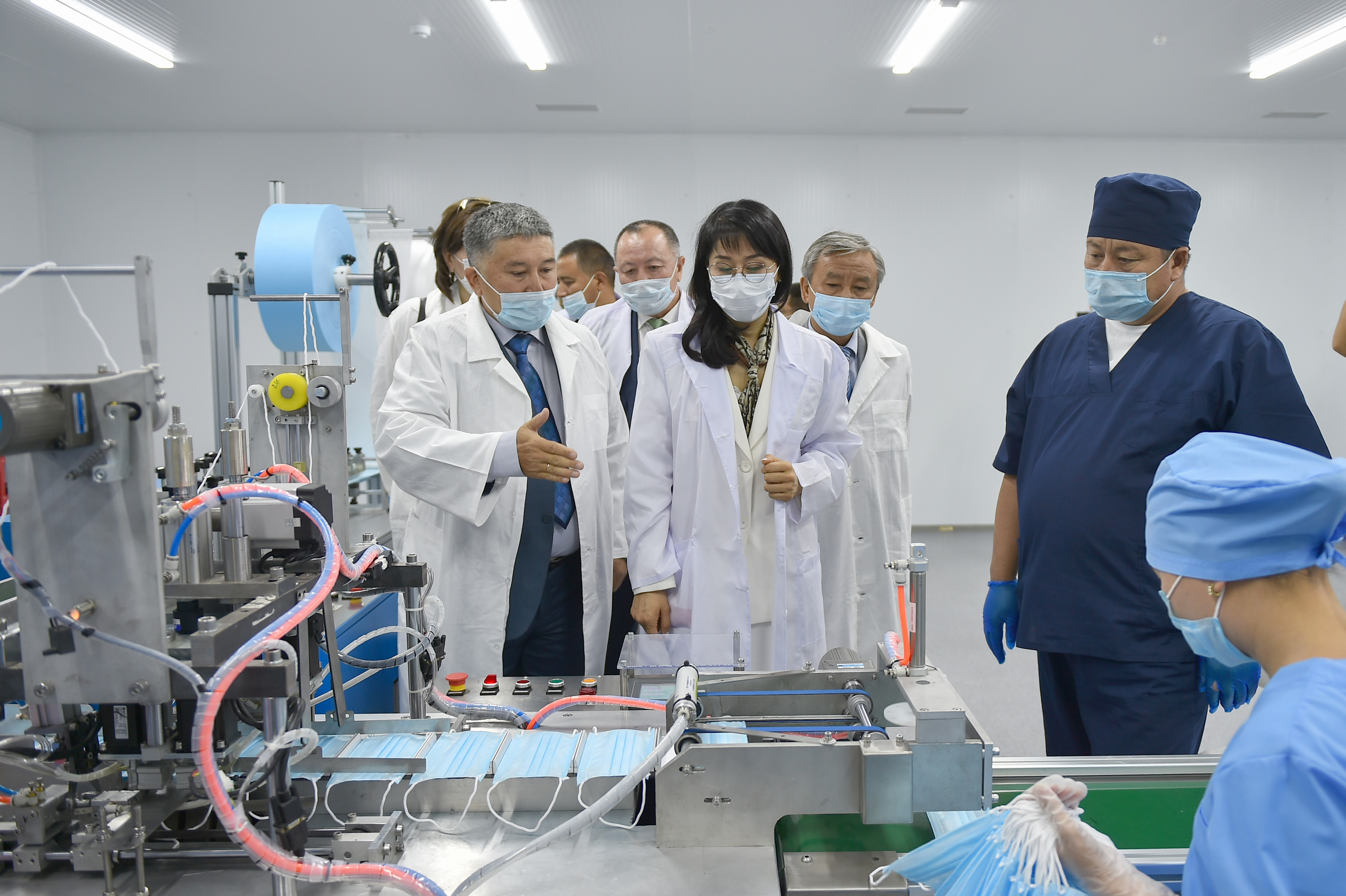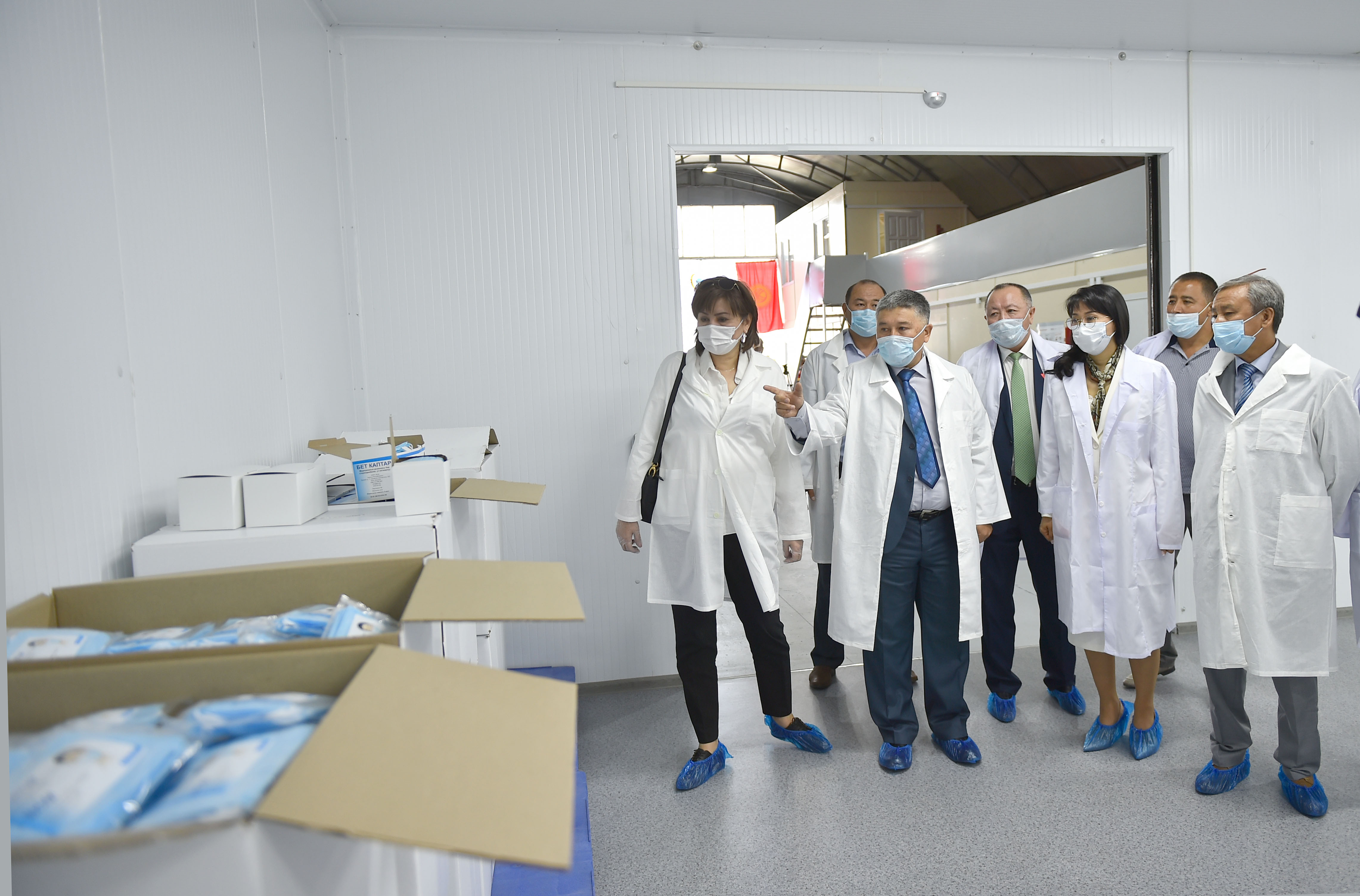 Вице-премьер-министр Аида Исмаилова бир жолу колдонулуучу беткаптарды чыгаруу боюнча өндүрүштүн ачылыш салтанатына катышты