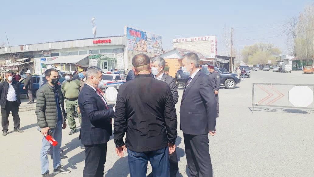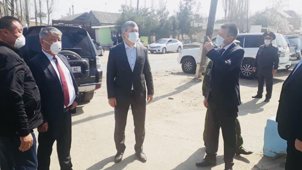 Вице-премьер-министр райондогу коомдук-саясий кырдаал менен таанышып, бир катар чектөөлөр киргизилген Благовещенка, Орто-Азия, Бостон калктуу аймактарына барды. Акрам Мадумаров коомдук коопсуздукту камсыздоо шарттары, орнотулган 19 өткөрмө пункттун иши менен таанышты.